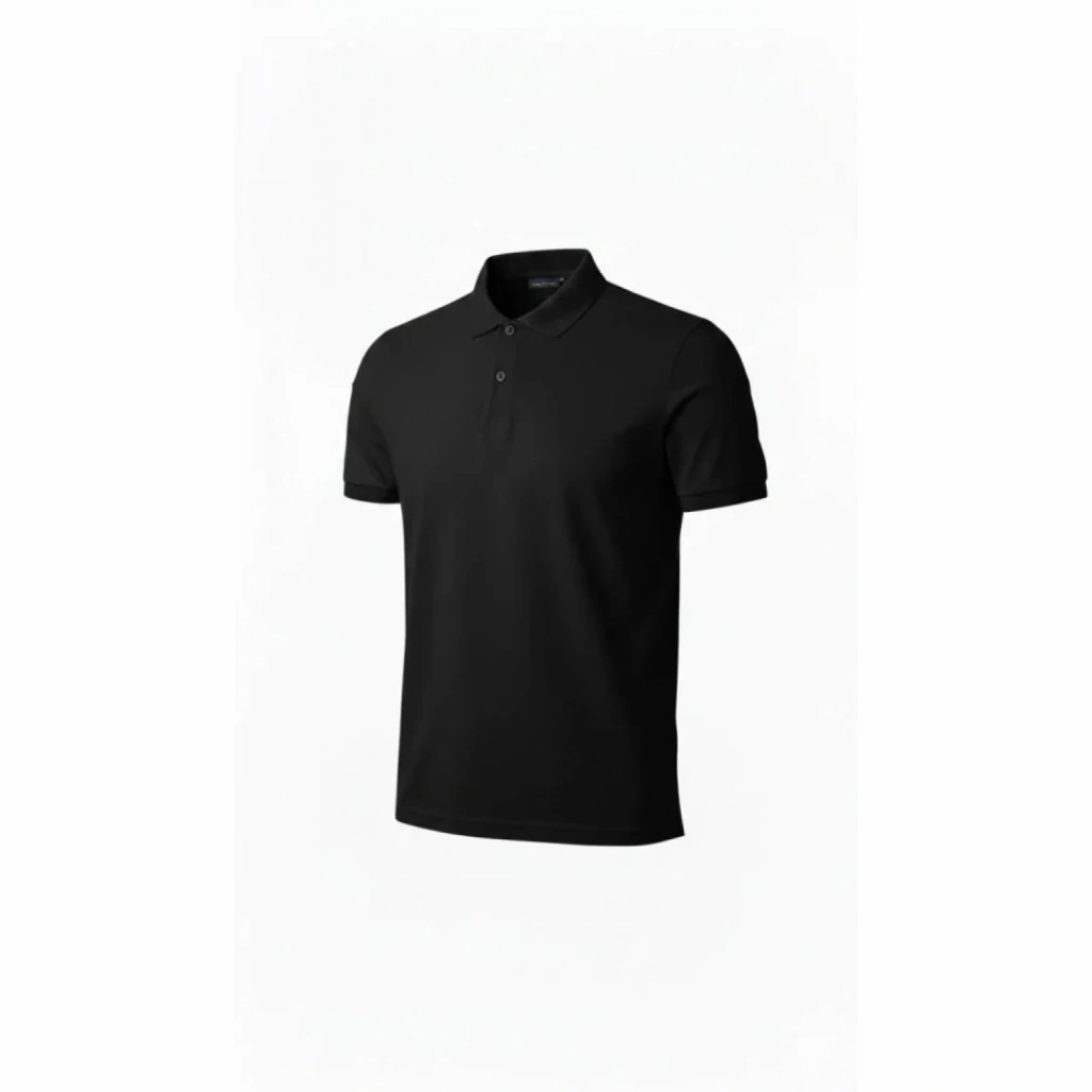 Pike Kumaş Düğmeli Yaka Battal Büyük Beden Günlük Kısa Kol Tişört T-shirt - Siyah