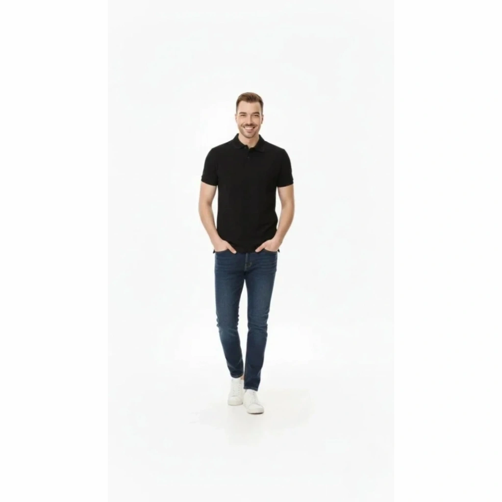 Erkek Pike Kumaş Düğmeli Yaka Regular Fit Günlük Kısa Kol Tişört T-shirt - Siyah