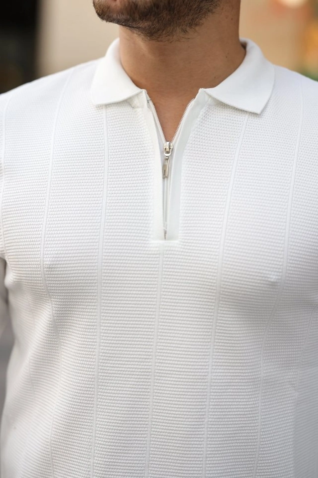 Erkek Fermuarlı Bisiklet Yaka Dokulu Uzun Kollu Triko