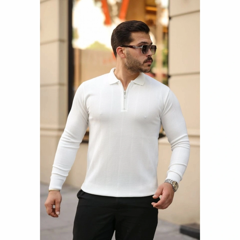 Erkek Pirinç Desenli Uzun Kollu Yakalı Triko