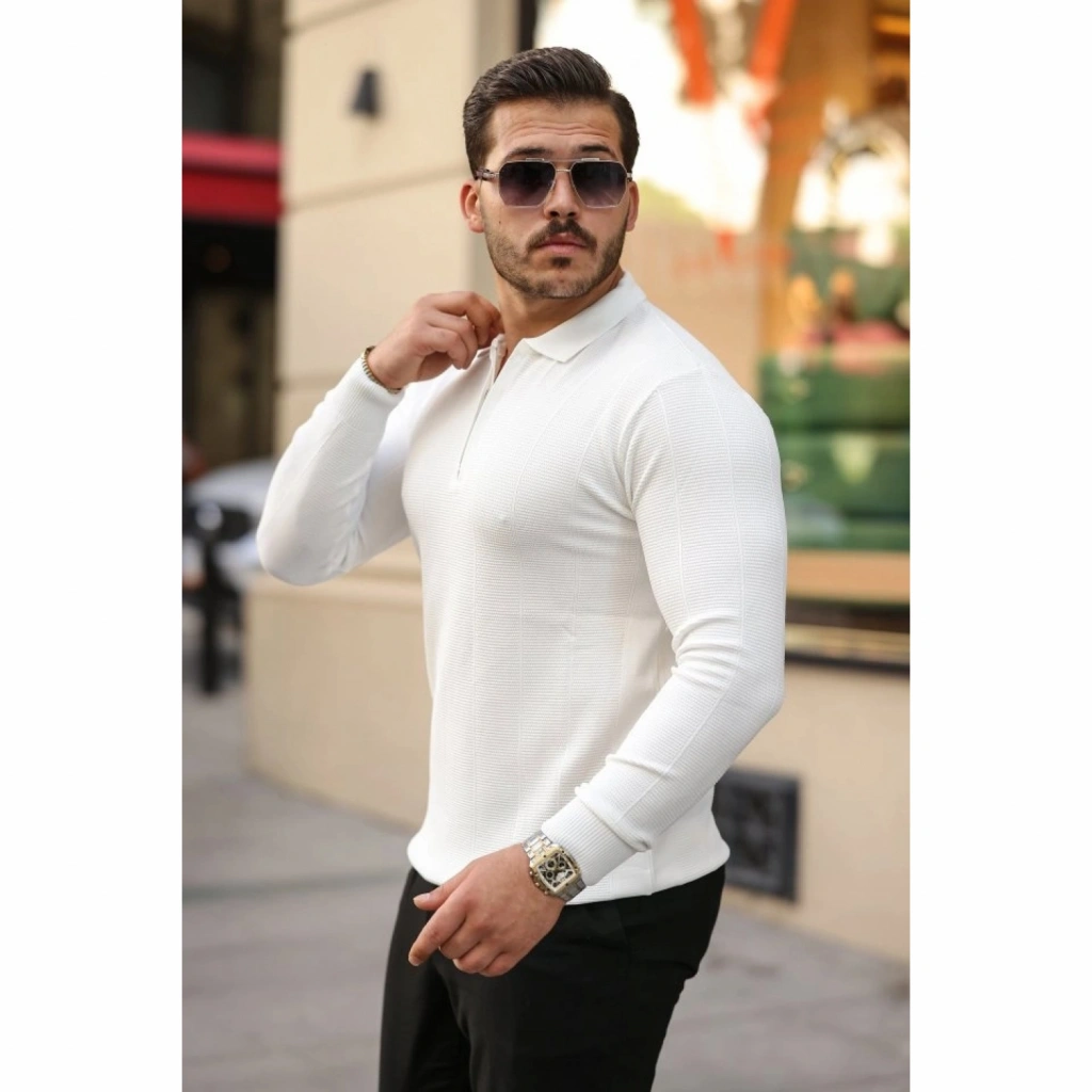 Erkek Yarım Balıkçı Yaka Kabartma Desenli Triko