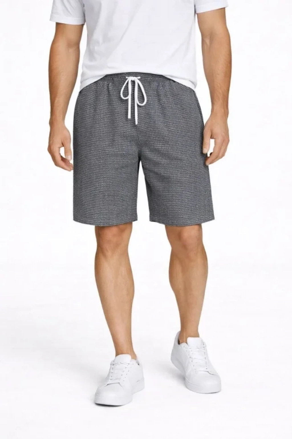 Erkek Pötikareli Şort – Beli Lastikli Bağcıklı, Cepli, Rahat Kesim Günlük Yazlık Şort - Füme