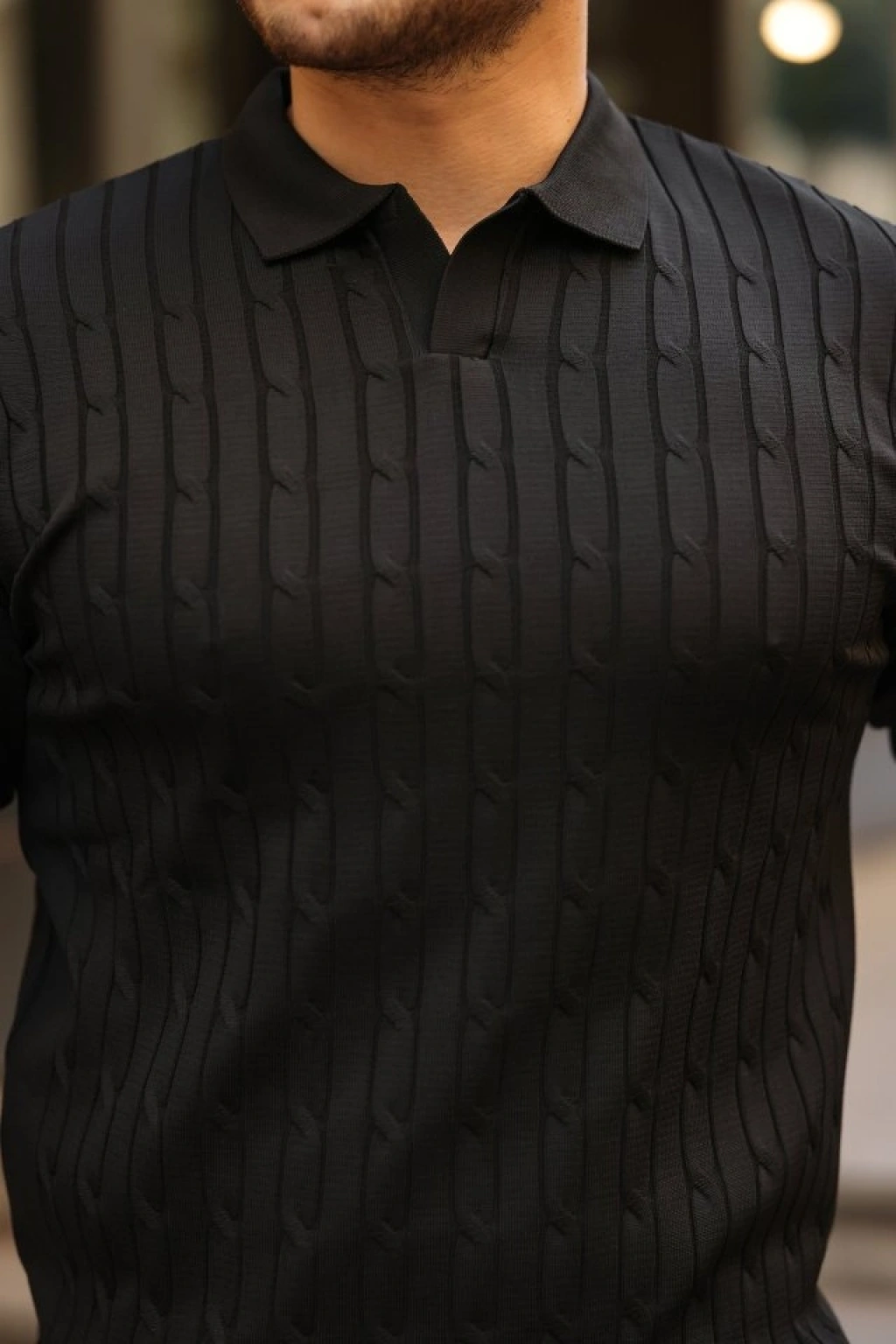 Erkek Pirinç Desenli Uzun Kollu Yakalı Triko