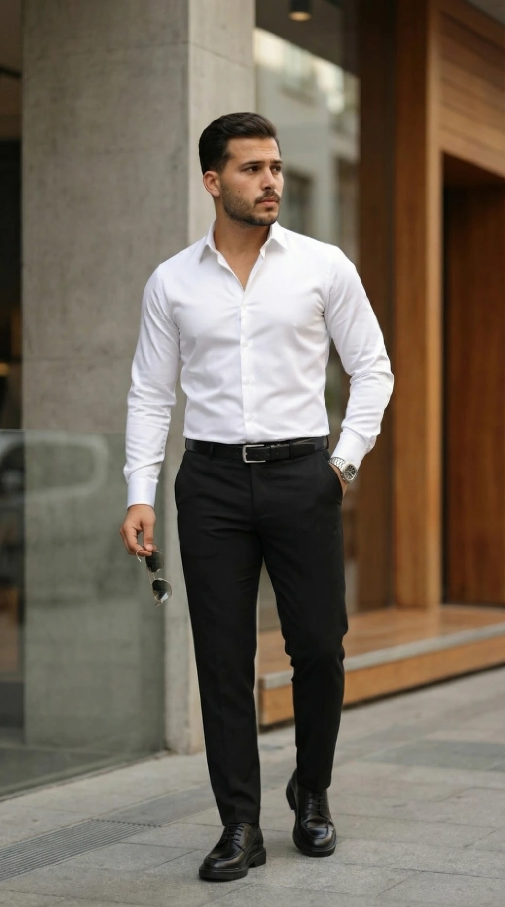 Erkek Waffle Dokuma Açık Yakalı Düğmeli Regular Kalıp 2’li Gömlek Seti - Siyah - Beyaz