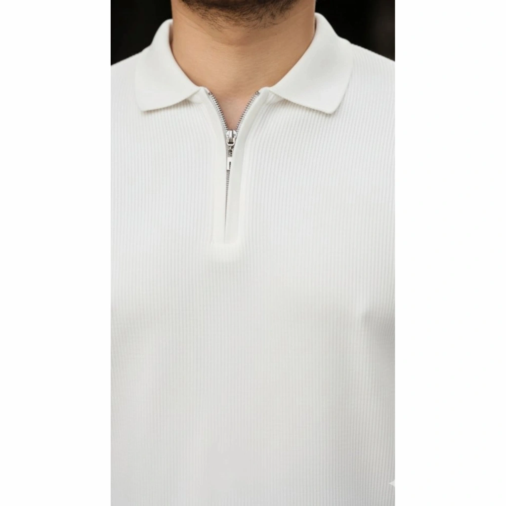 Erkek Fermuarlı Bisiklet Yaka Dokulu Uzun Kollu Triko