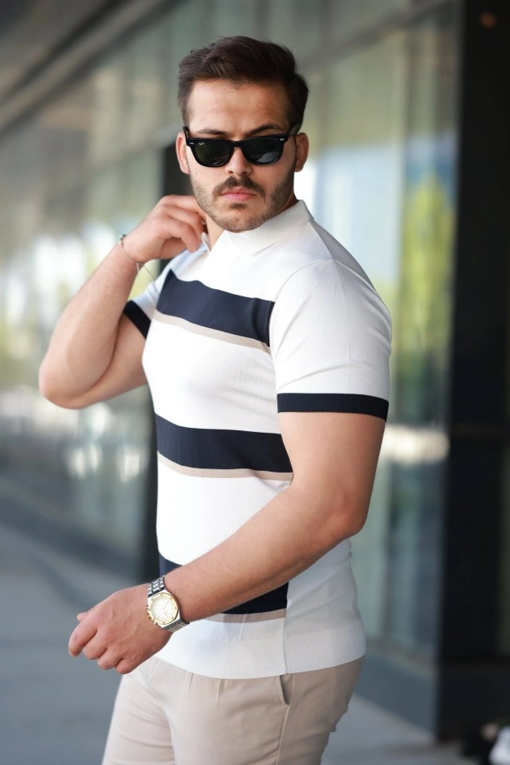 Erkek şerit Desenli Hemşire Yaka Kısa Kollu Tişört