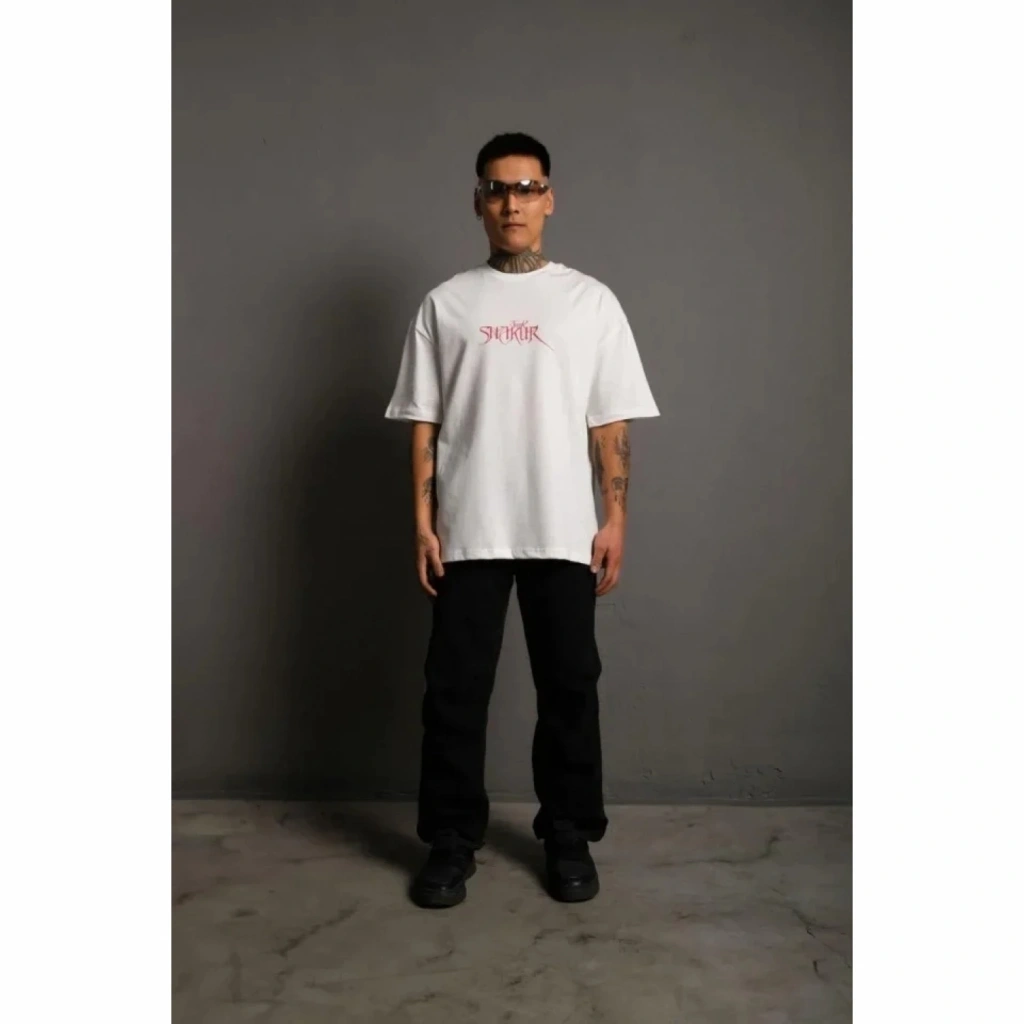 Erkek Sırt Baskılı Oversize T-Shirt - Beyaz