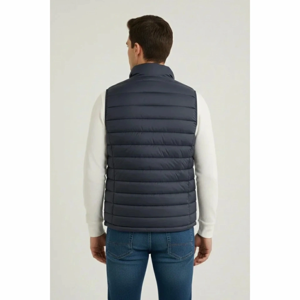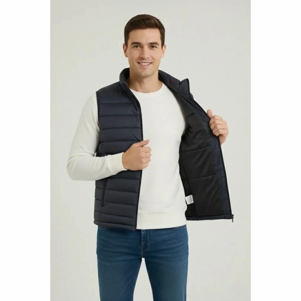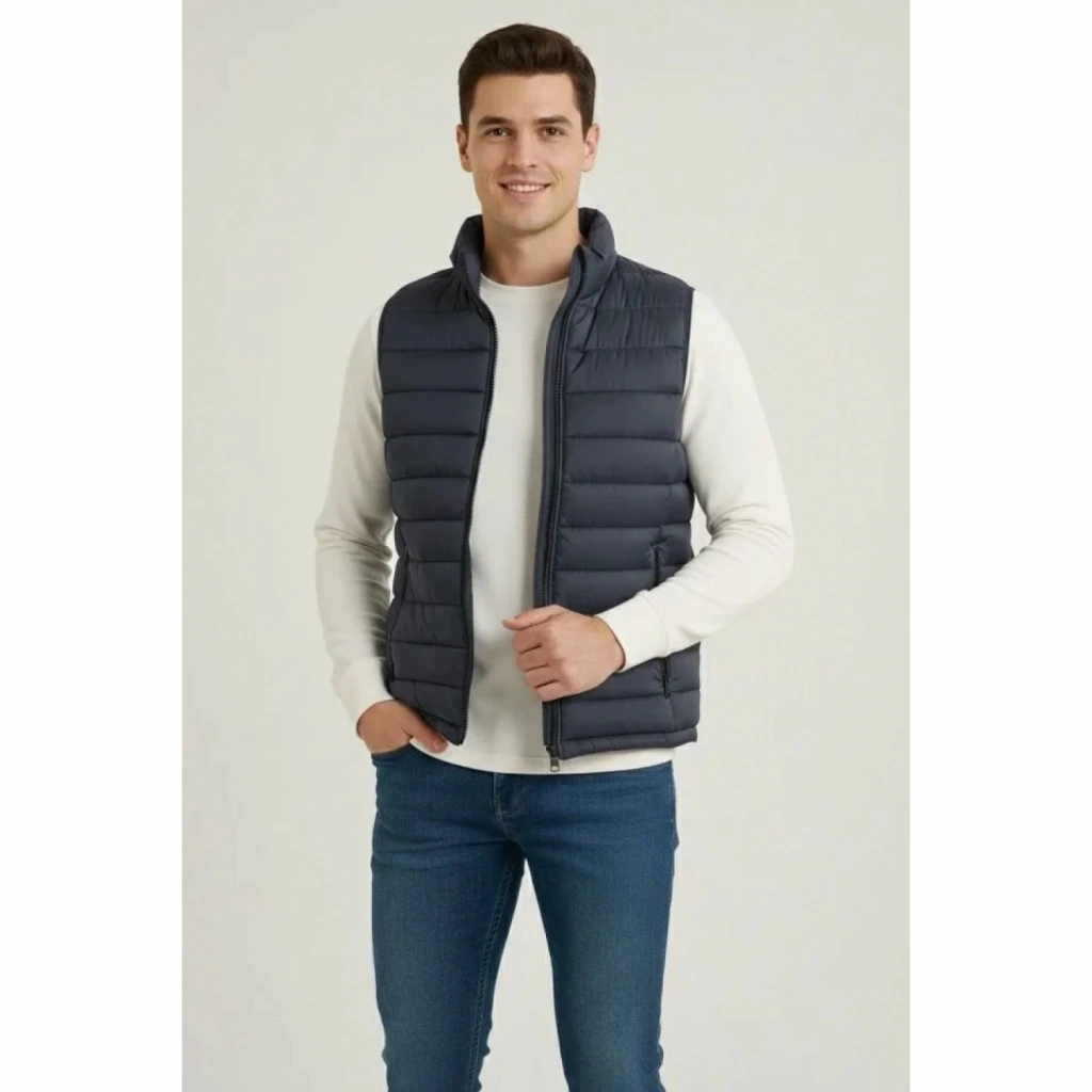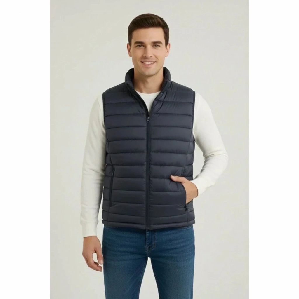 Erkek Şişme Fermuarlı Yelek Su Itici Kapitone Astarlı Kumaş Cepli Hafif Kışlık Spor Rahat Kalıp - Lacivert