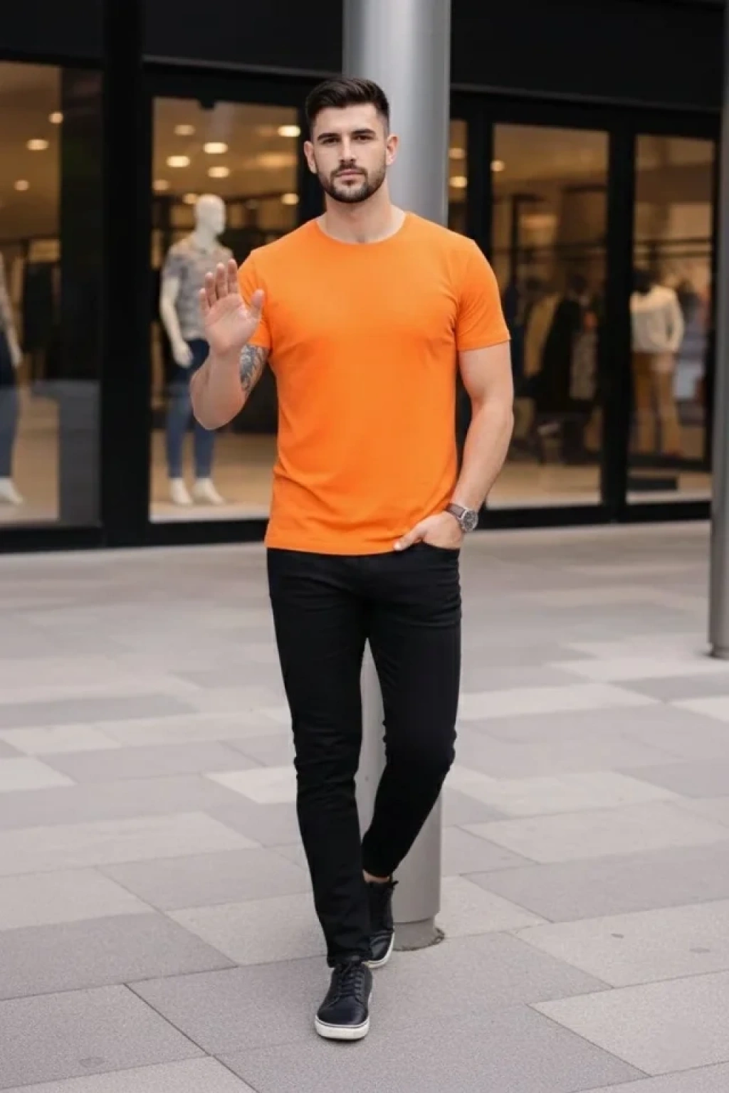 Erkek T-Shirt Bisiklet Yaka Slim Fit Dar Kesim Likralı Tişört Günlük Basic Body - Turuncu