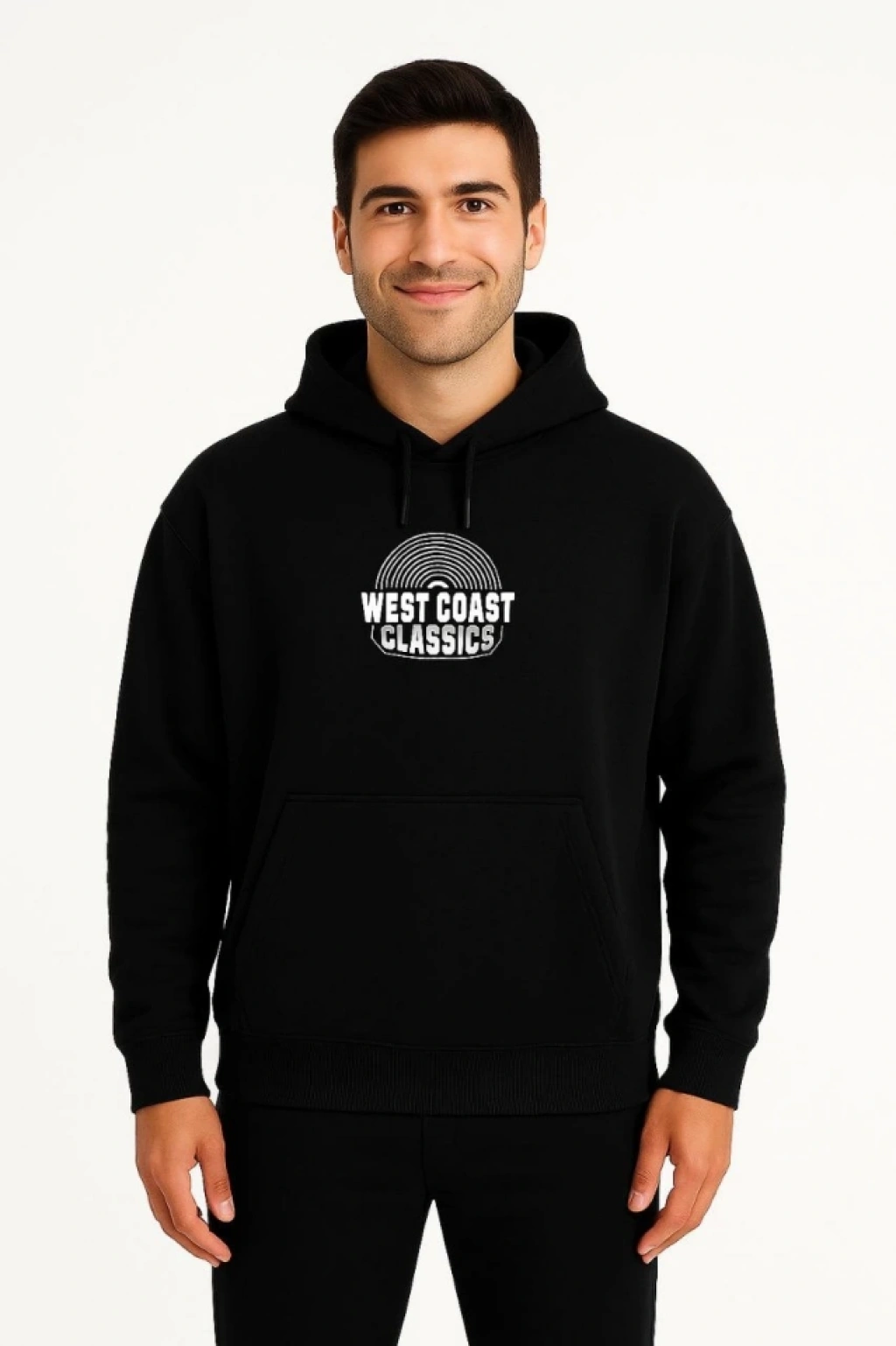 Erkek Üç İplik Kapüşonlu Ön Ve Arka Baskılı SweatShirt Hoodie - Siyah