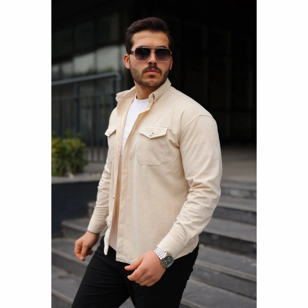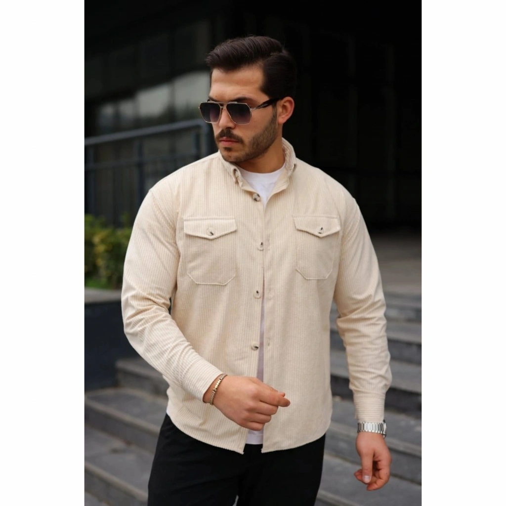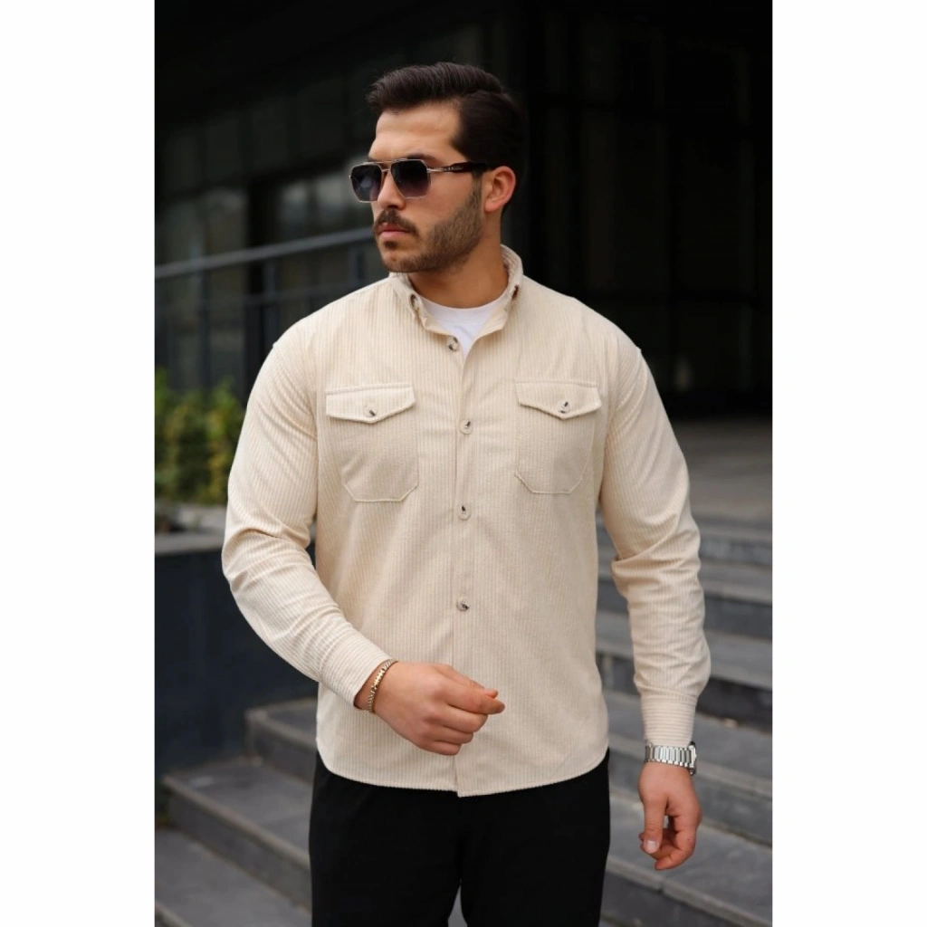 Erkek Uzun Kollu Cepli Kadife Gömlek