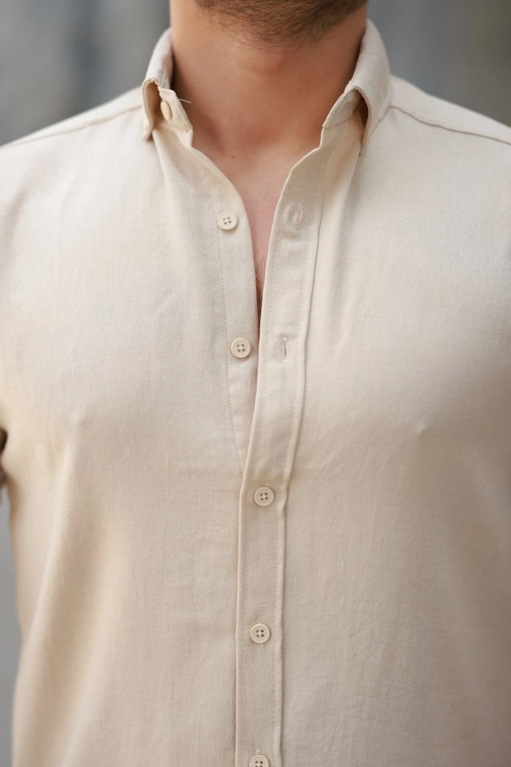 Erkek Uzun Kollu Rahat Keten Gömlek