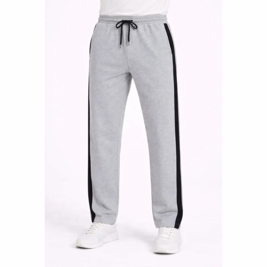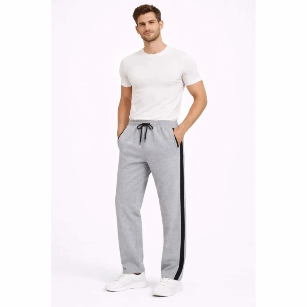 Erkek Yandan Şeritli Boru Paça Eşofman Altı 3 Iplik Pamuklu Eşofman - Gri
