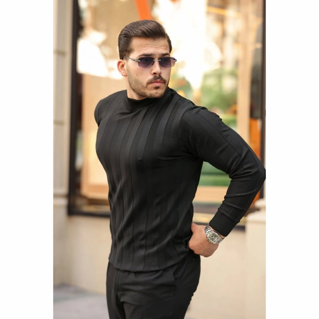 Erkek Yarım Balıkçı Yaka Kabartma Desenli Triko