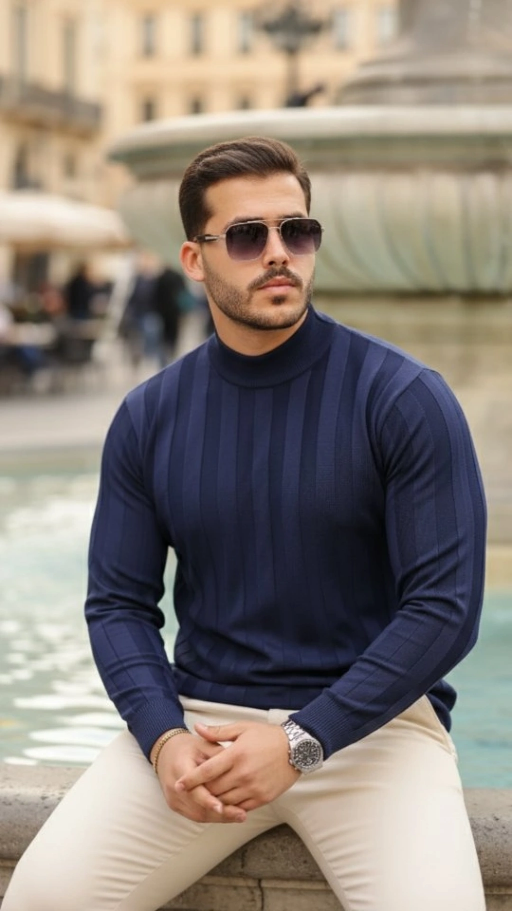 Erkek Yarım Balıkçı Yaka Kabartma Desenli Triko
