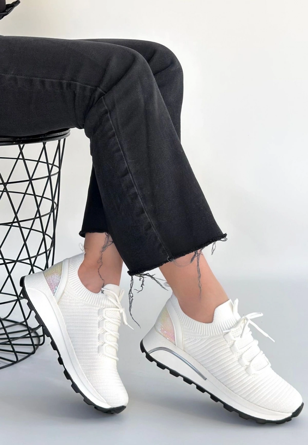 Feort Beyaz Triko Bağcıklı Spor Ayakkabı