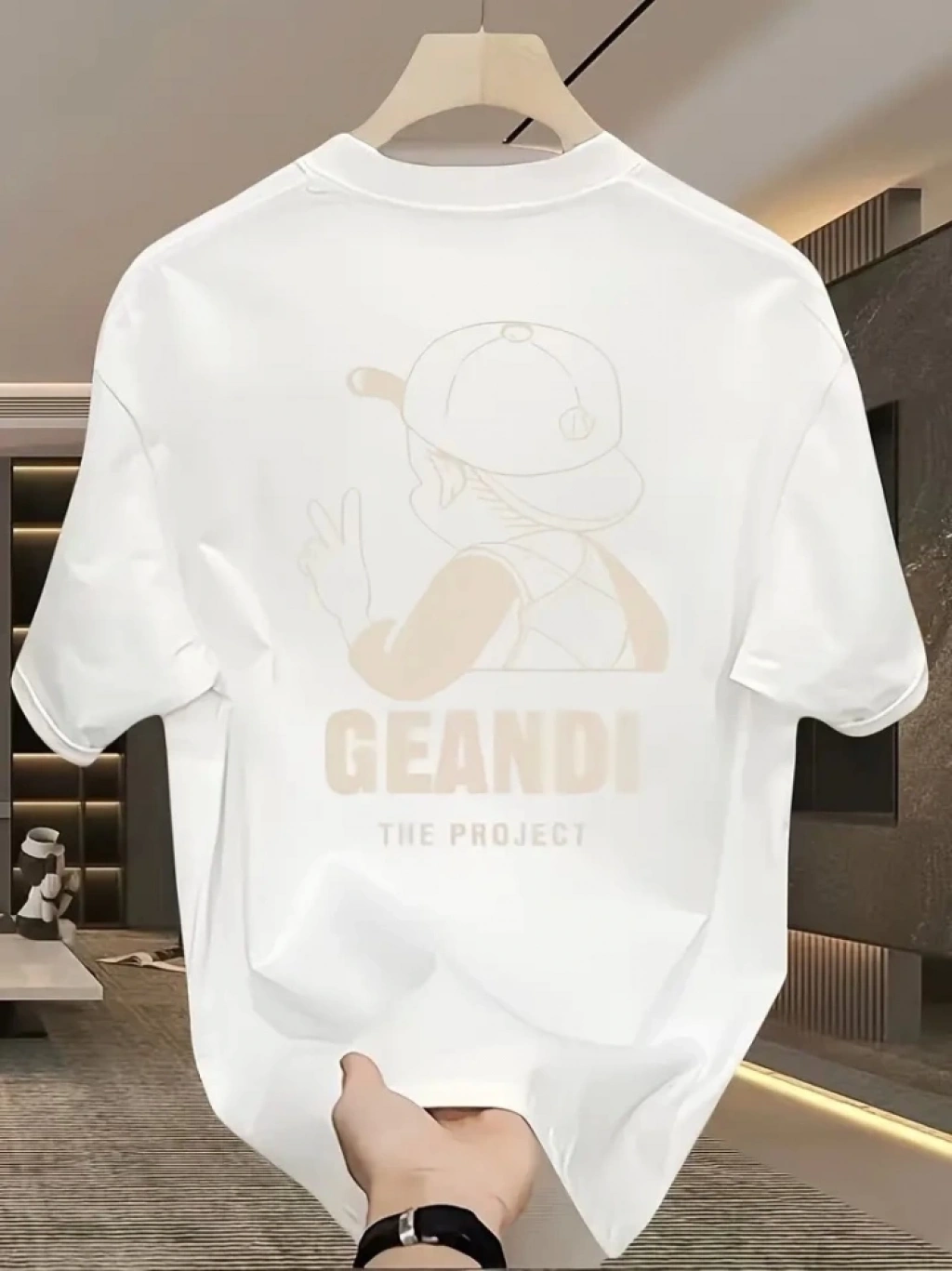 Geniş Kesim Pamuklu Tişört - GANDHI The Project Baskılı, Beyaz, Rahat Kesim, Kısa Kollu, Günlük Kıyafet, Her Gün Giyilebilecek Tişört- Beyaz