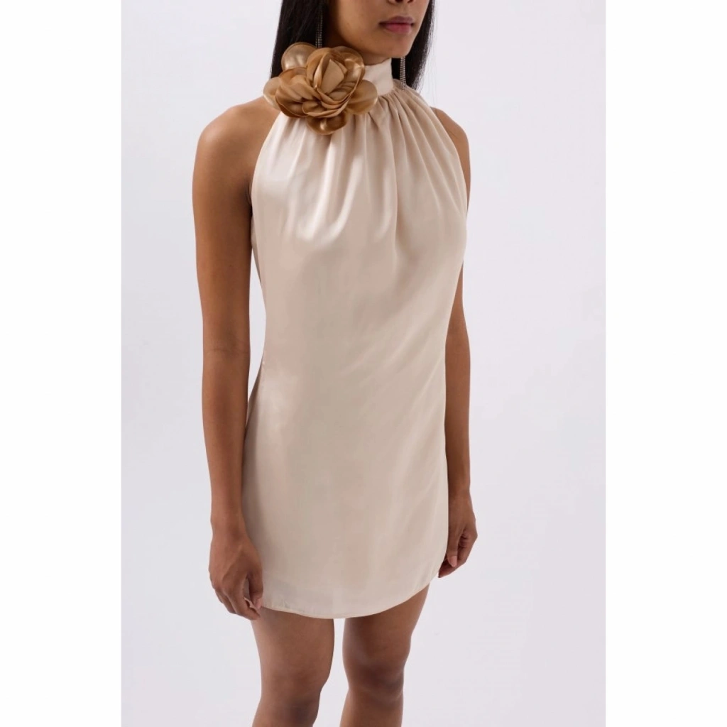 Gül Detay Mini Saten Elbise