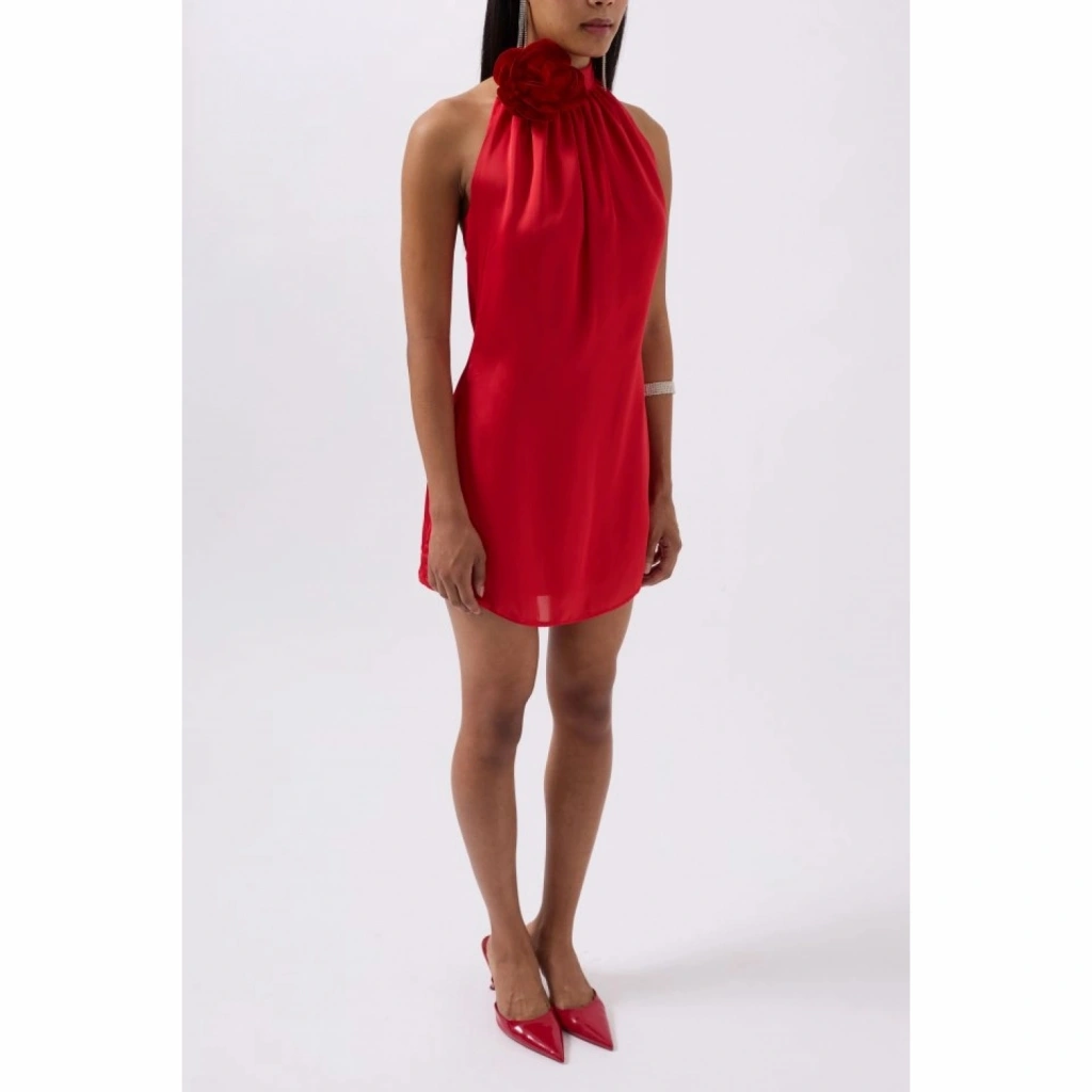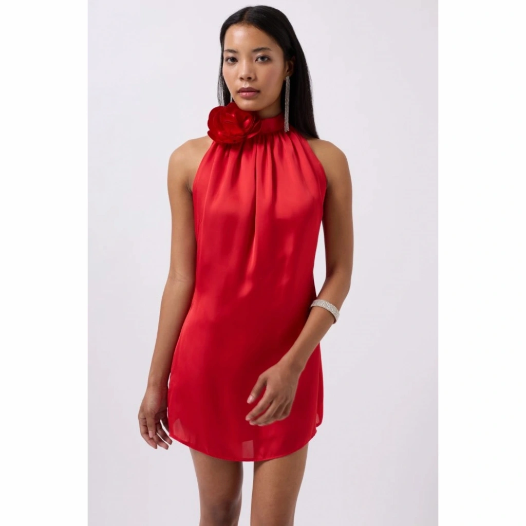 Gül Detay Mini Saten Elbise
