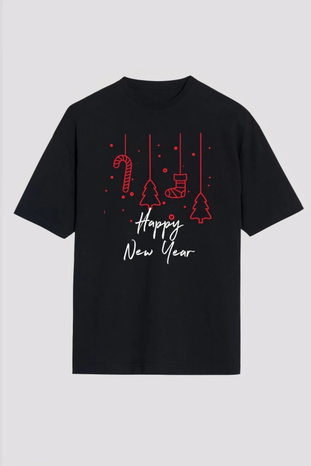 Happy New Year Baskılı T-shirt - Siyah