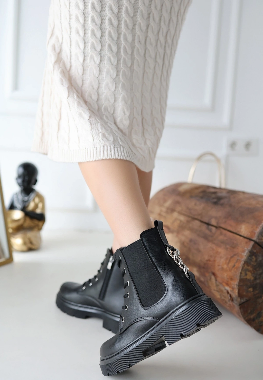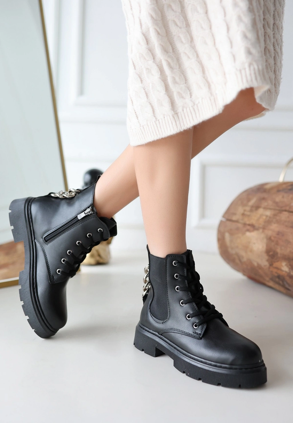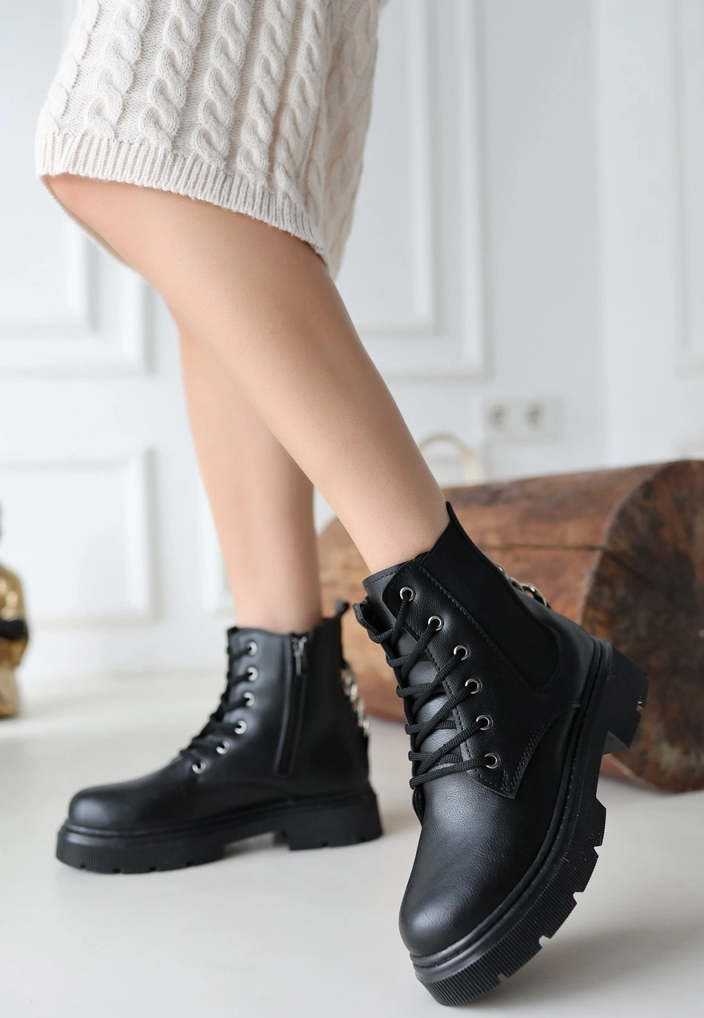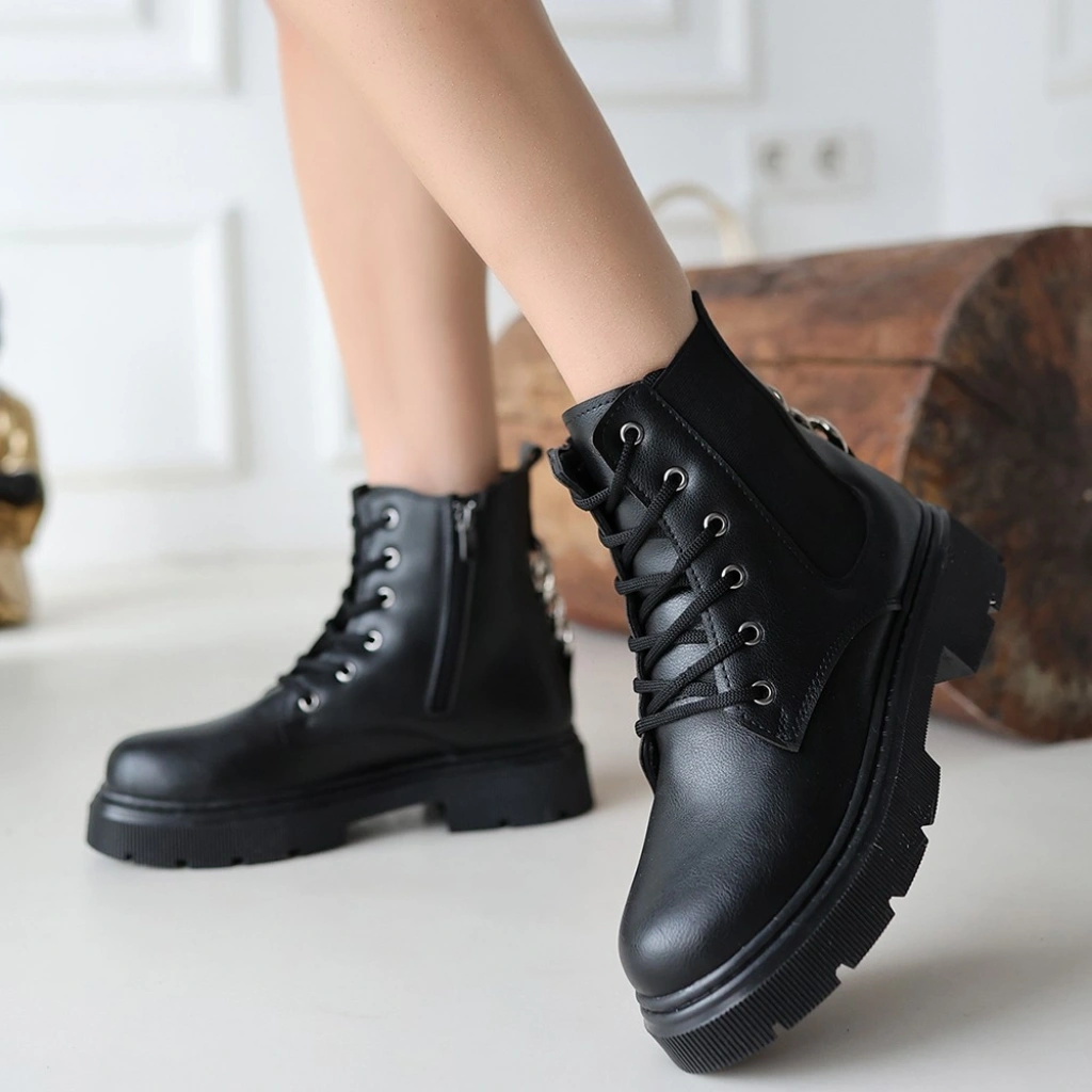 Detay : Topuklu Yandan Fermuarlı Bağcıklı Bot