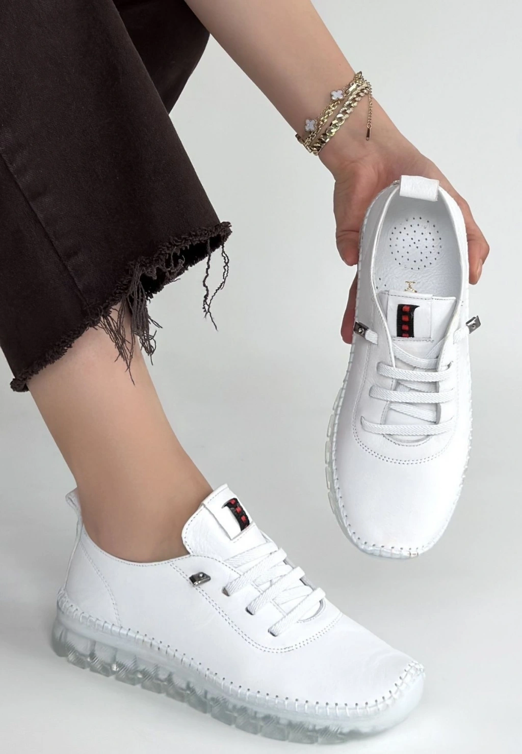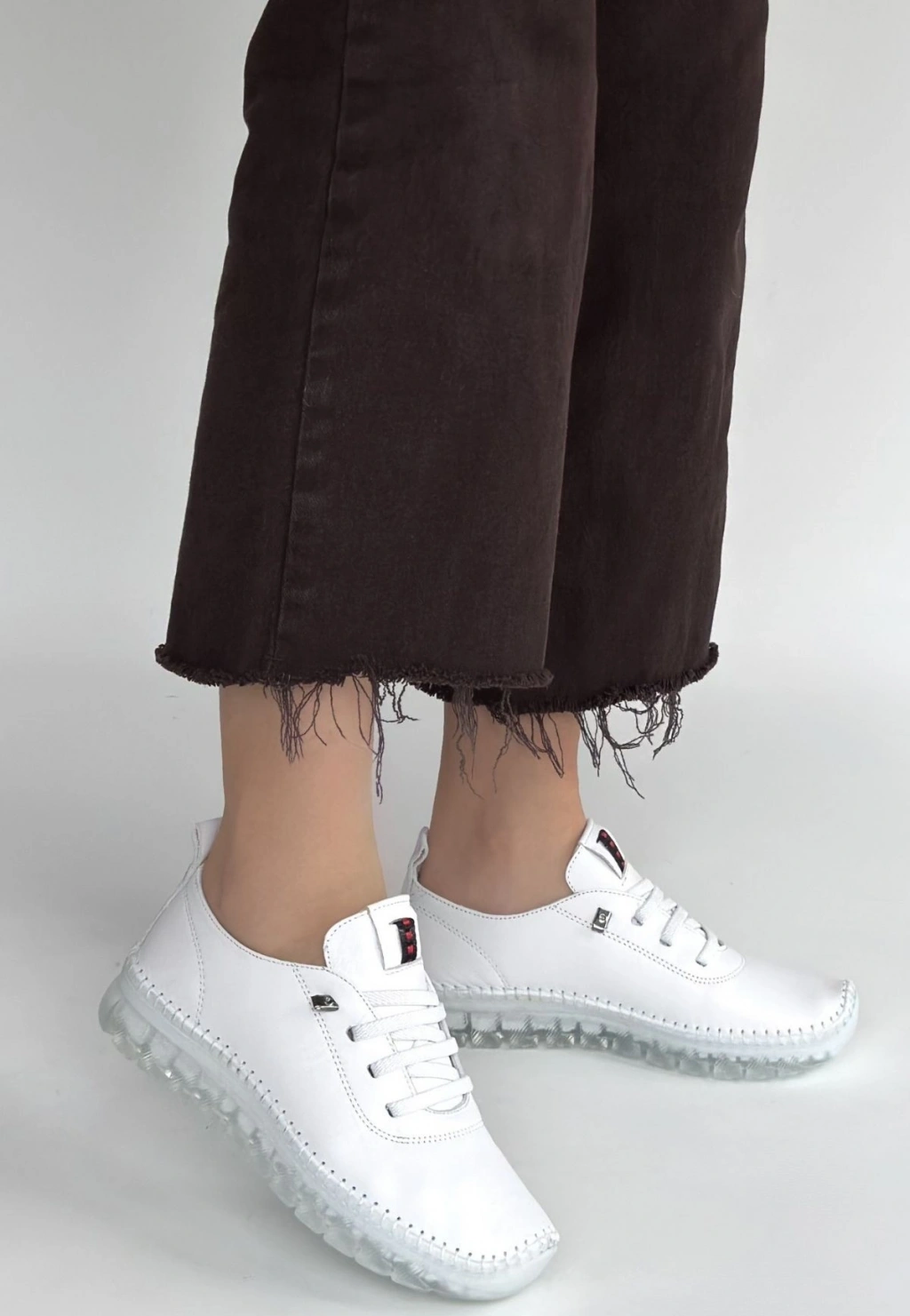 Jiten Beyaz Deri Bağcıklı Spor Ayakkabı