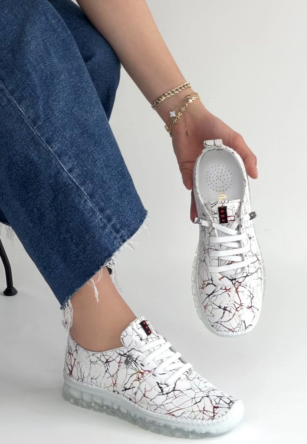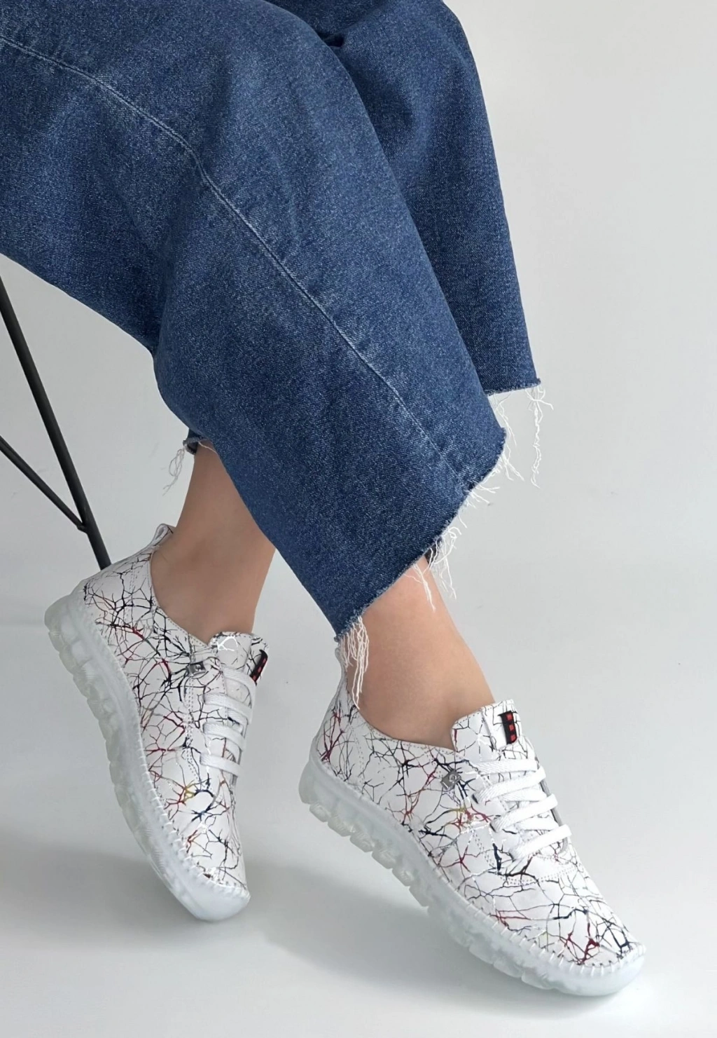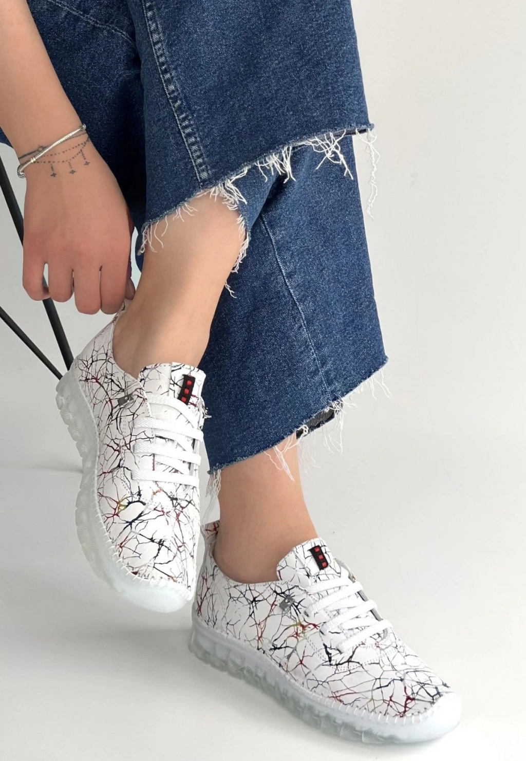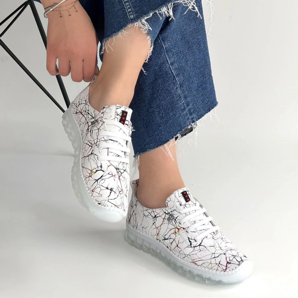 Kinte Beyaz Desenli Deri Bağcıklı Spor Ayakkabı