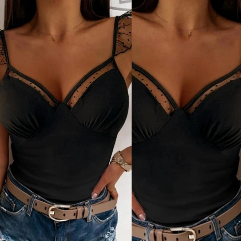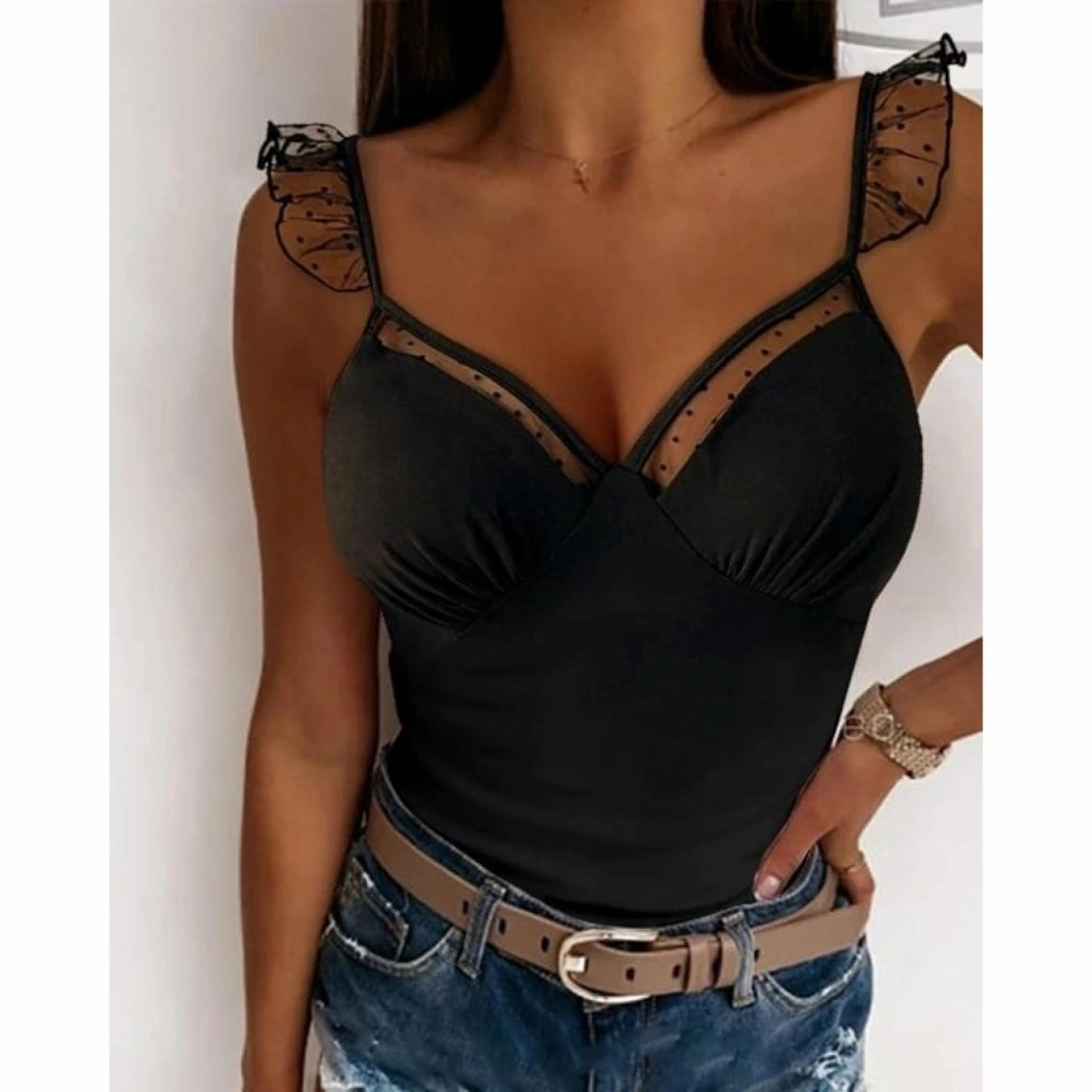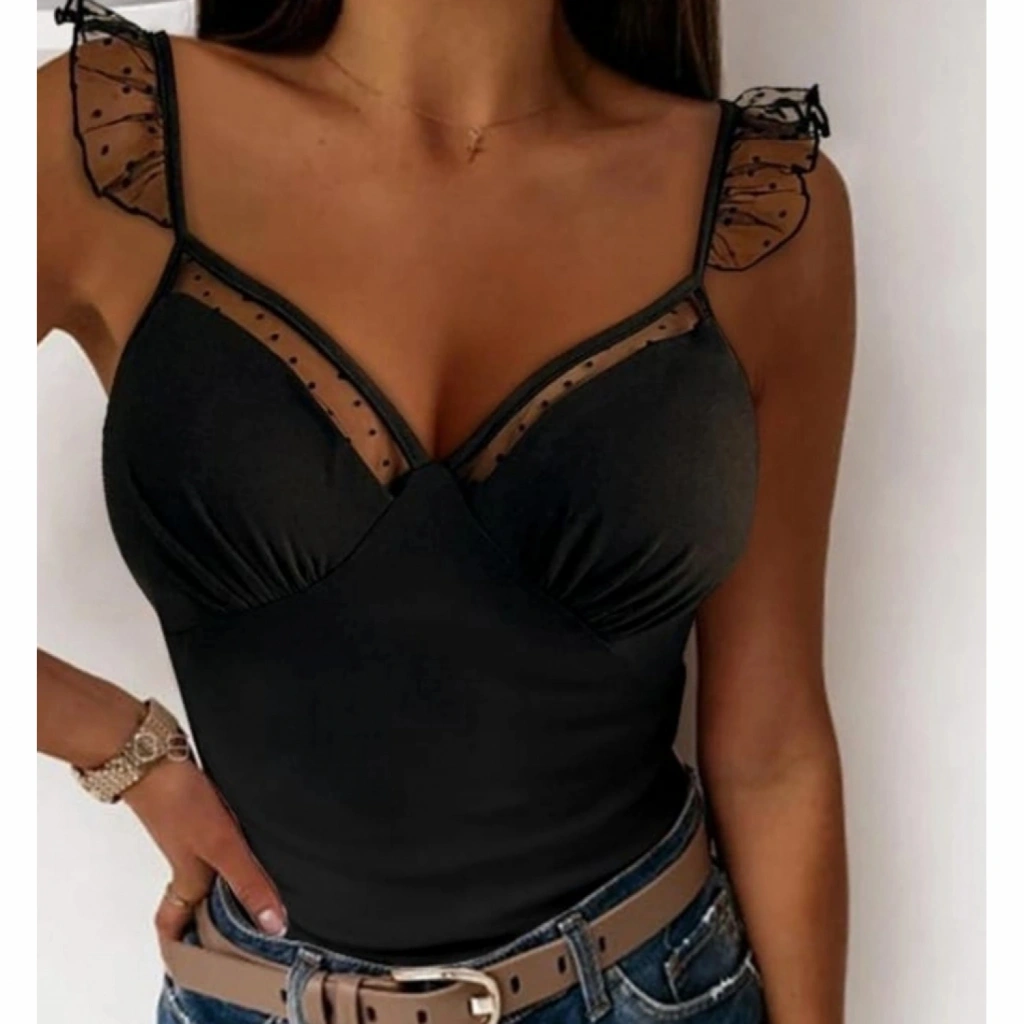 Kadın Askılar Tül Işlemeli Kalp Yaka Tül Detay Dalgıç Bluz