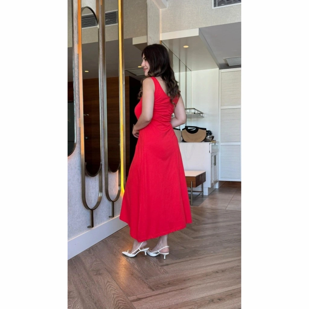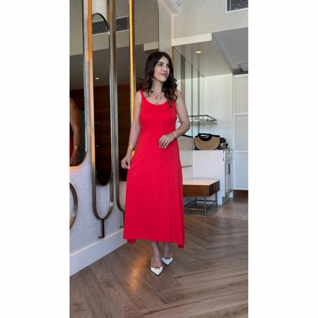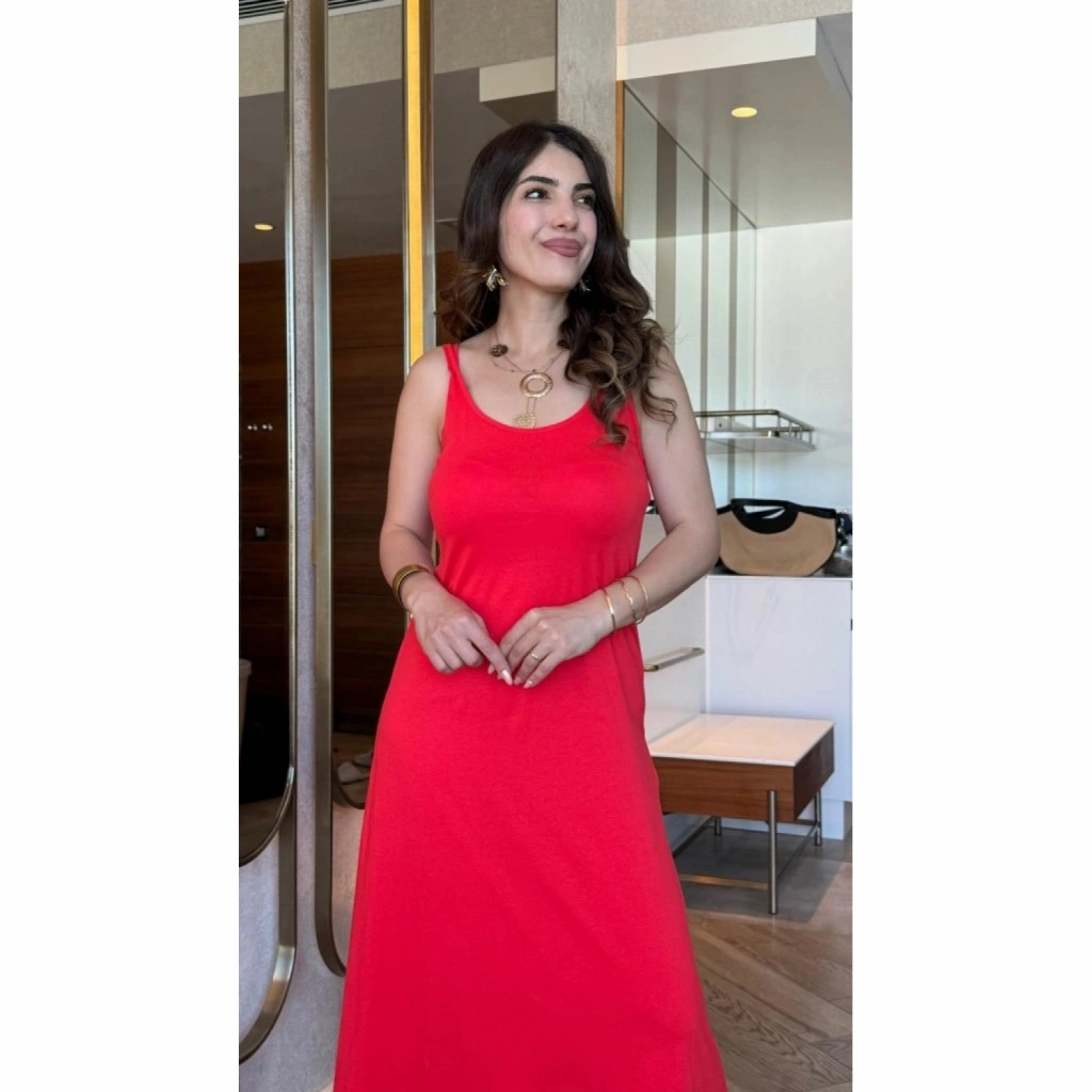 Kadın Askılı Yuvarlak Yakalı Viskon Elbise
