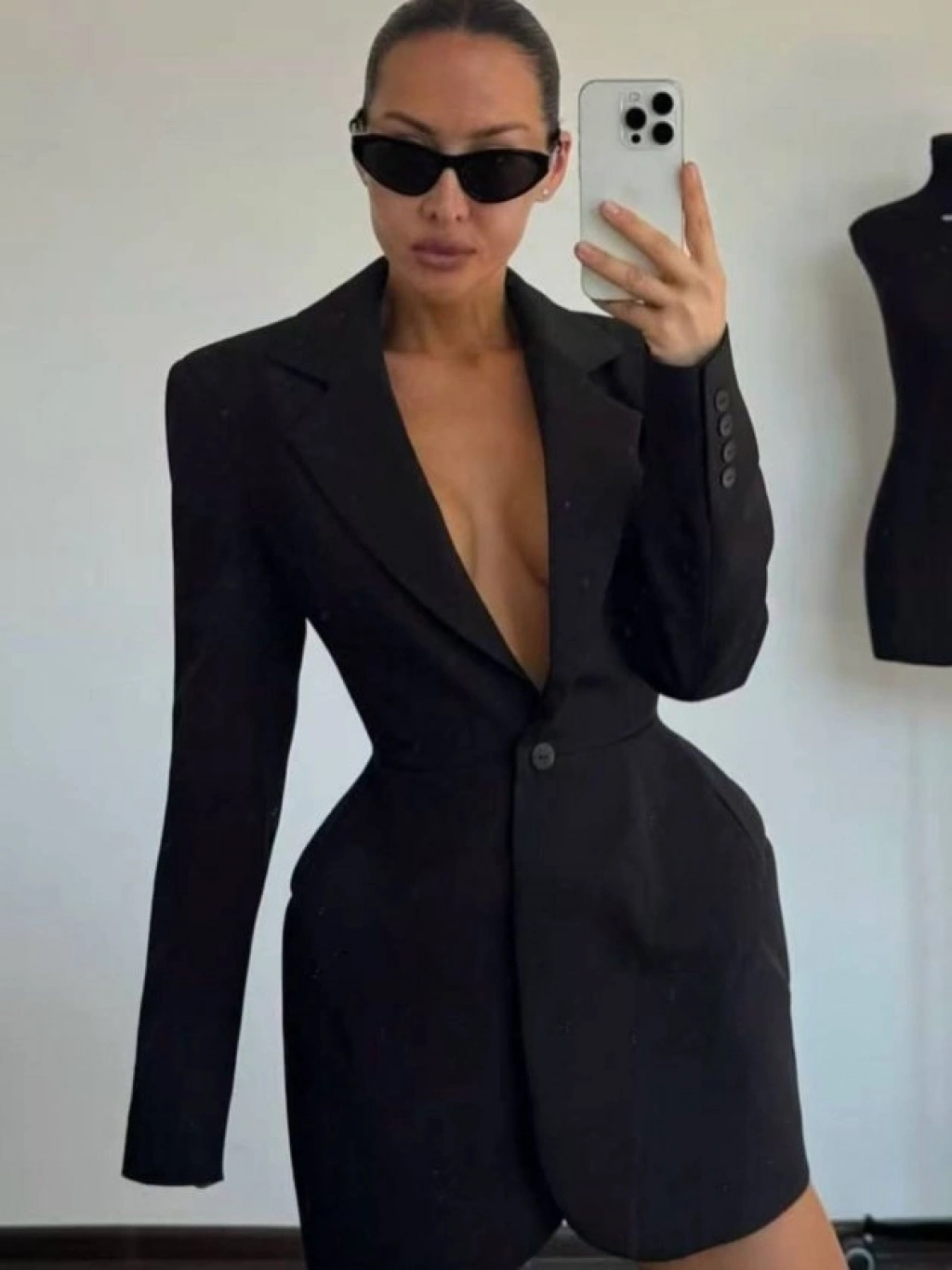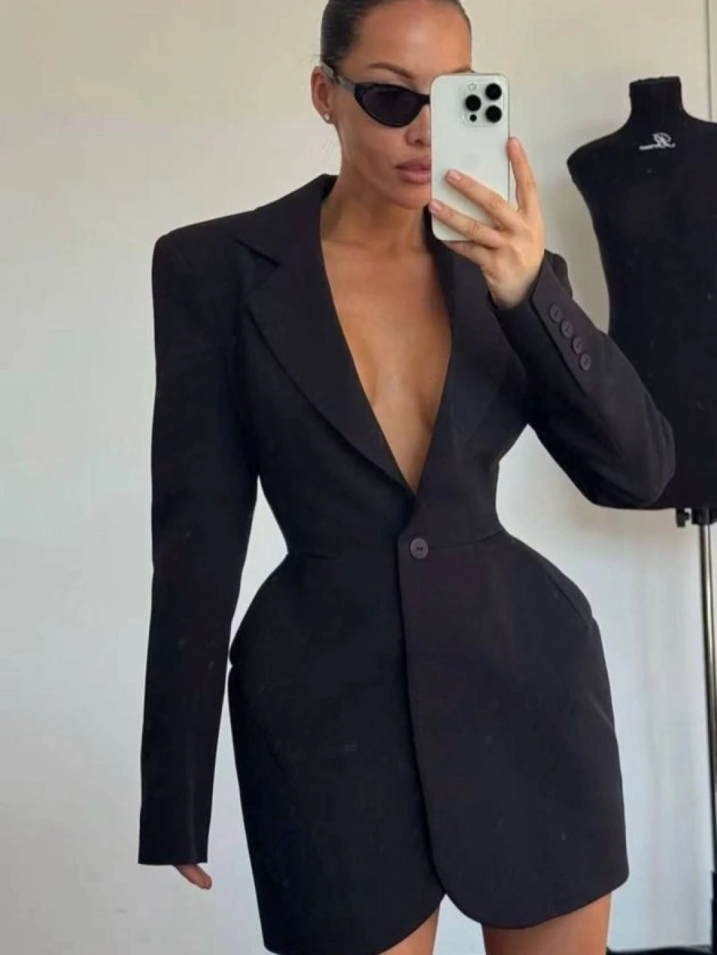 Kadın Atlas-dokuma Kumaş Ceket Elbise