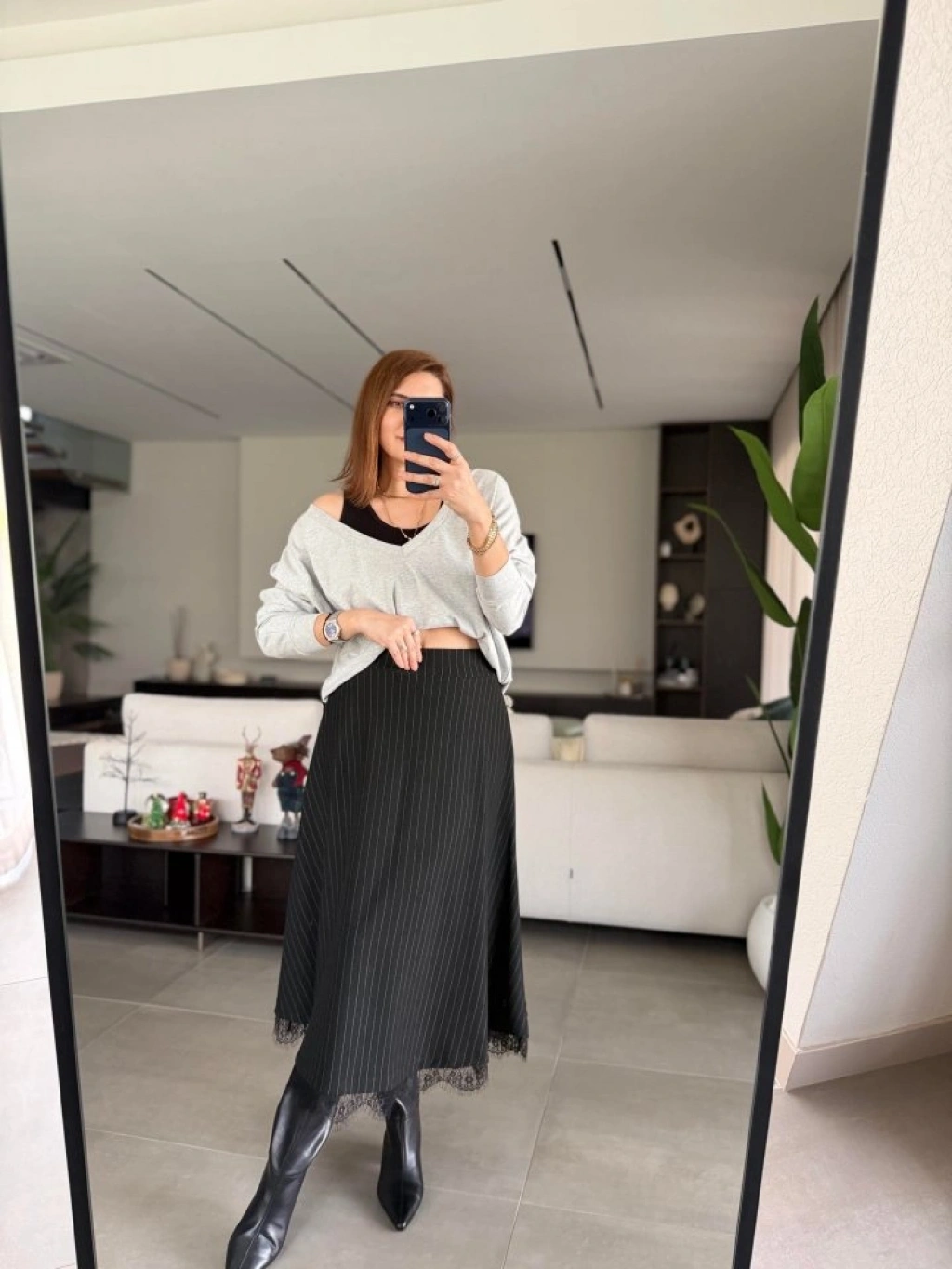 Modelin Ölçüleri: Boy:165, Kg:55, Göğüs:90, Bel:72, Kalça: 100