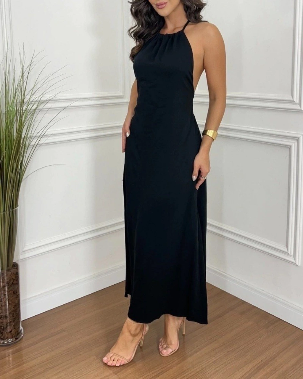 Kadın Boyundan Askılı Halter Kollu Viskon Elbise