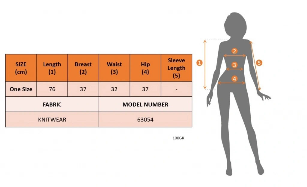 Modelin Ölçüleri: Boy:165, Kg:55, Göğüs:90, Bel:72, Kalça: 100