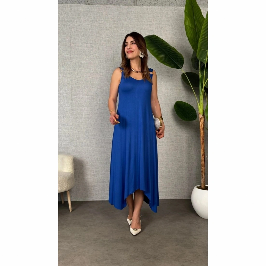 Kadın çan Dokuma Kumaş V Yaka Asimetrik Kesim Elbise