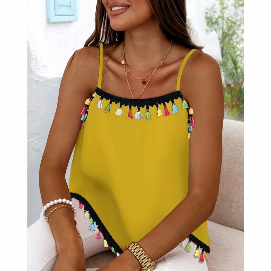 Kadın Ip Askılı Püskül Detaylı Sandy Bluz