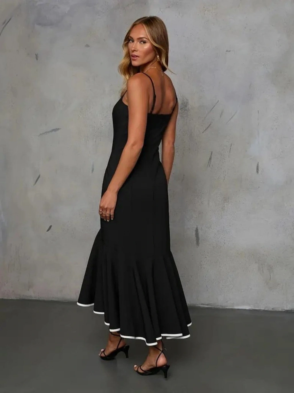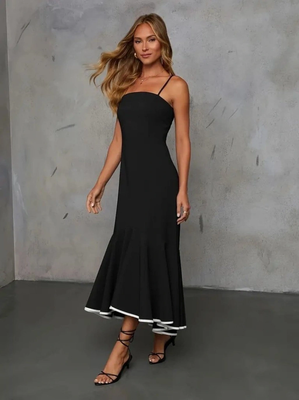 Kadın Ip Askılı Straplez Kesim Detay Maksi Boy Janjan Krep Elbise
