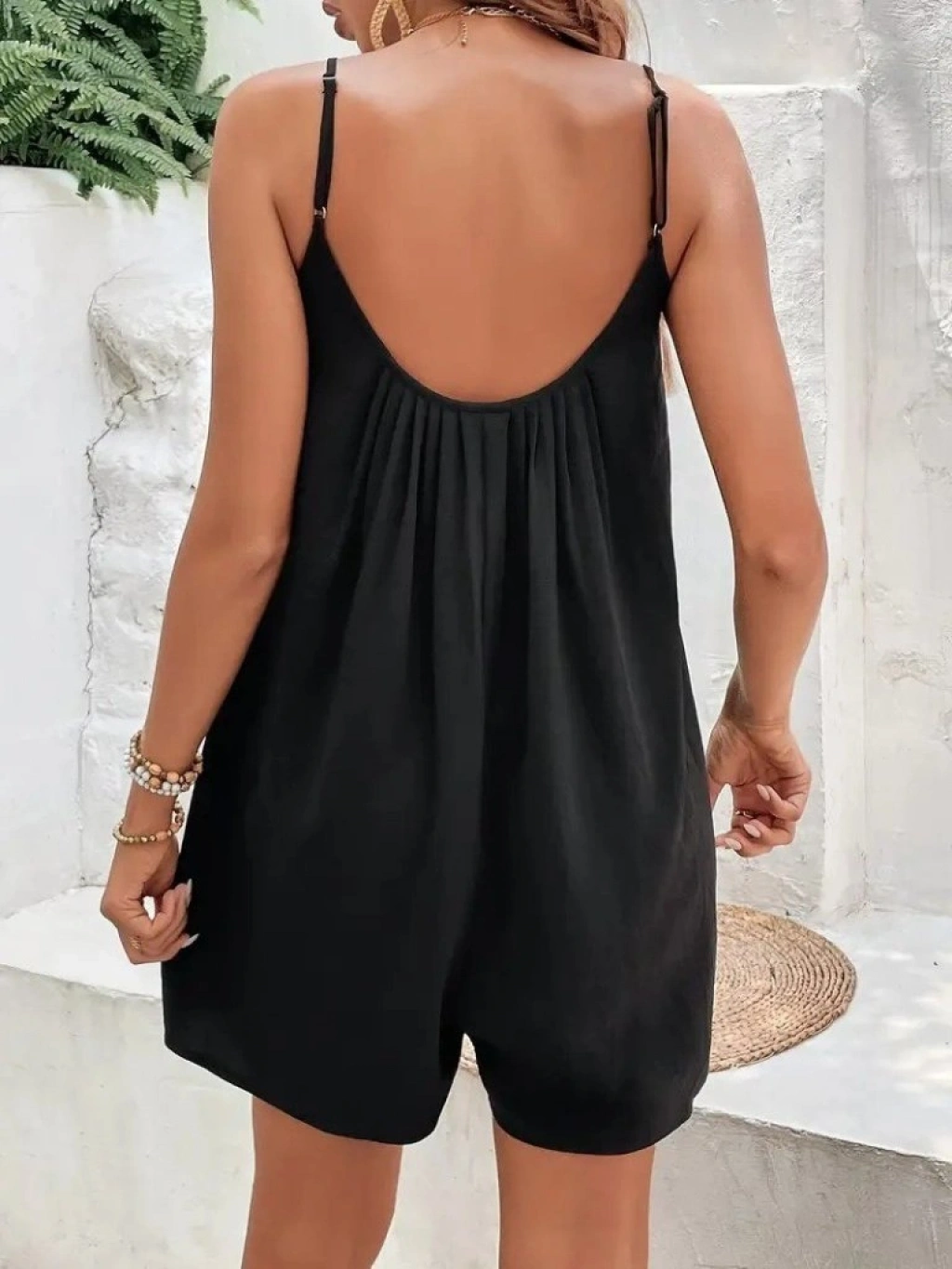 Kadın Ip Askılı Yuvarlak Yakalı Pileli Viskon Tulum