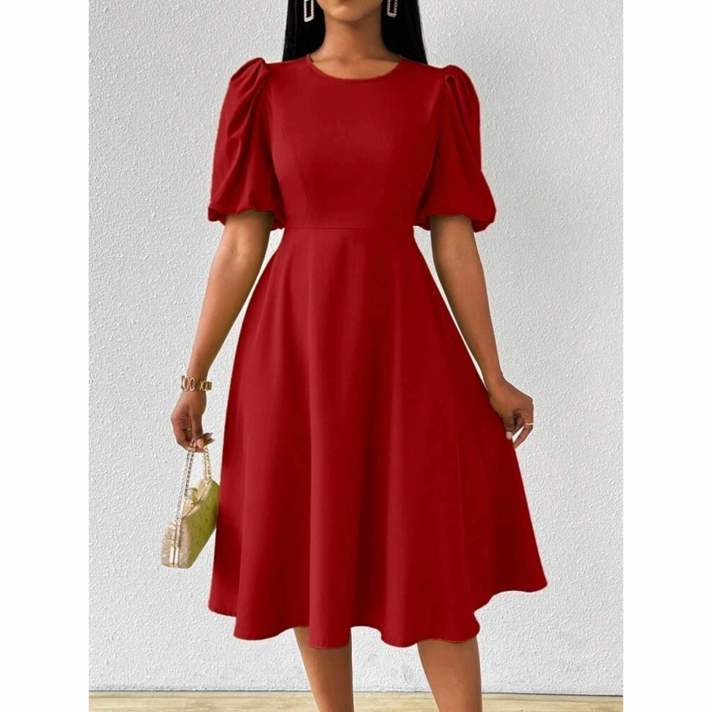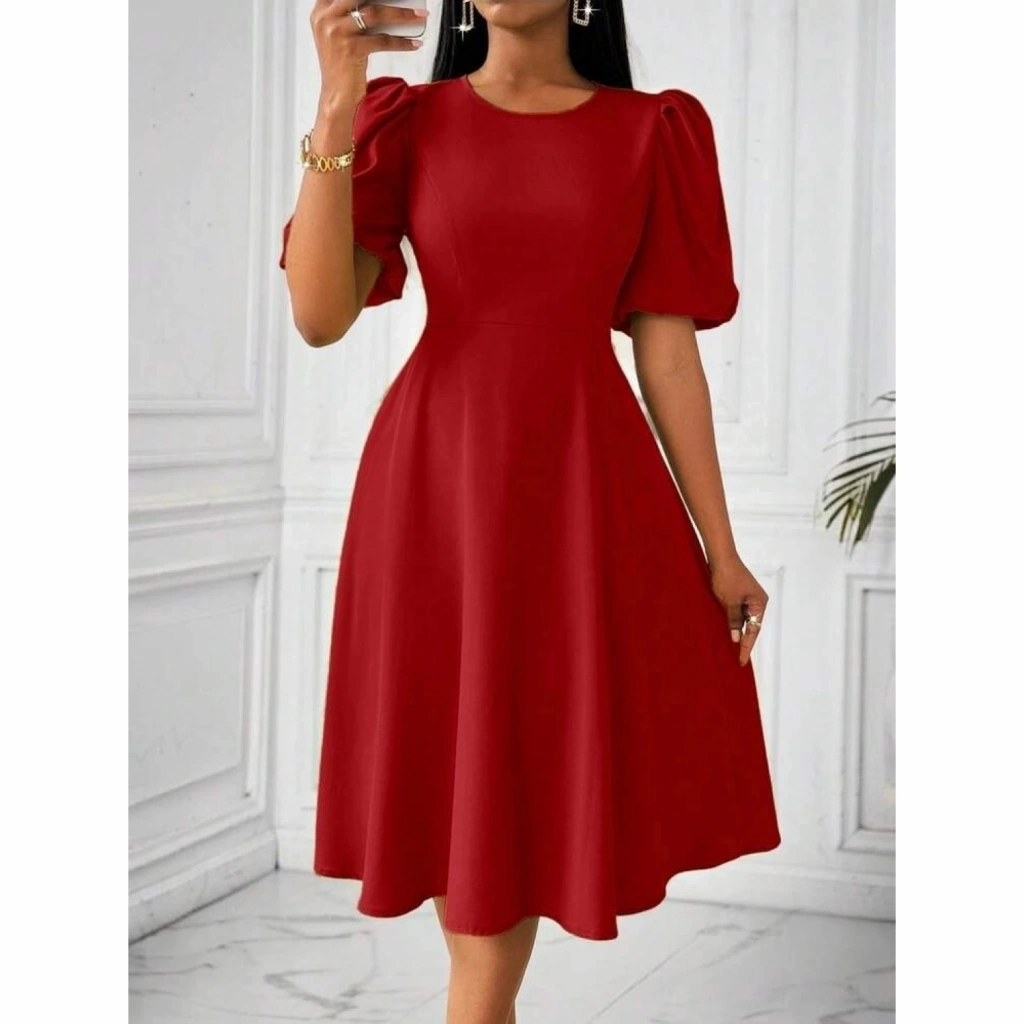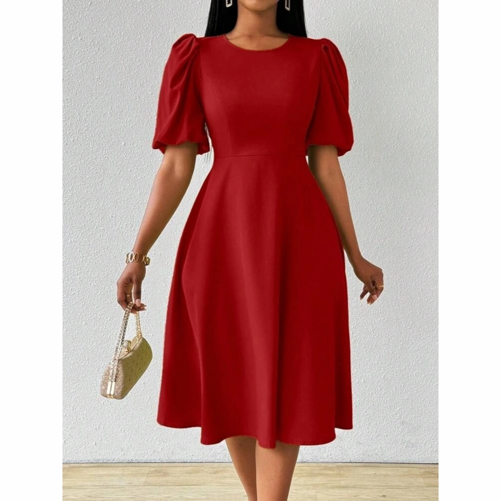 Kadın Kısa Balon Kollu Bisiklet Yaka Kiloş Janjan Krep Elbise