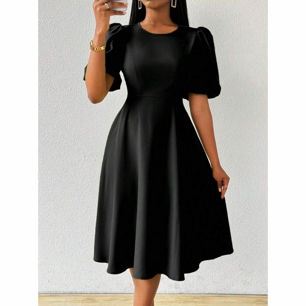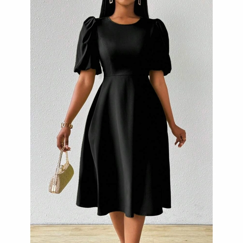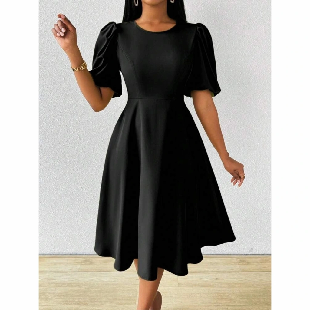 Kadın Kısa Balon Kollu Bisiklet Yaka Kiloş Janjan Krep Elbise
