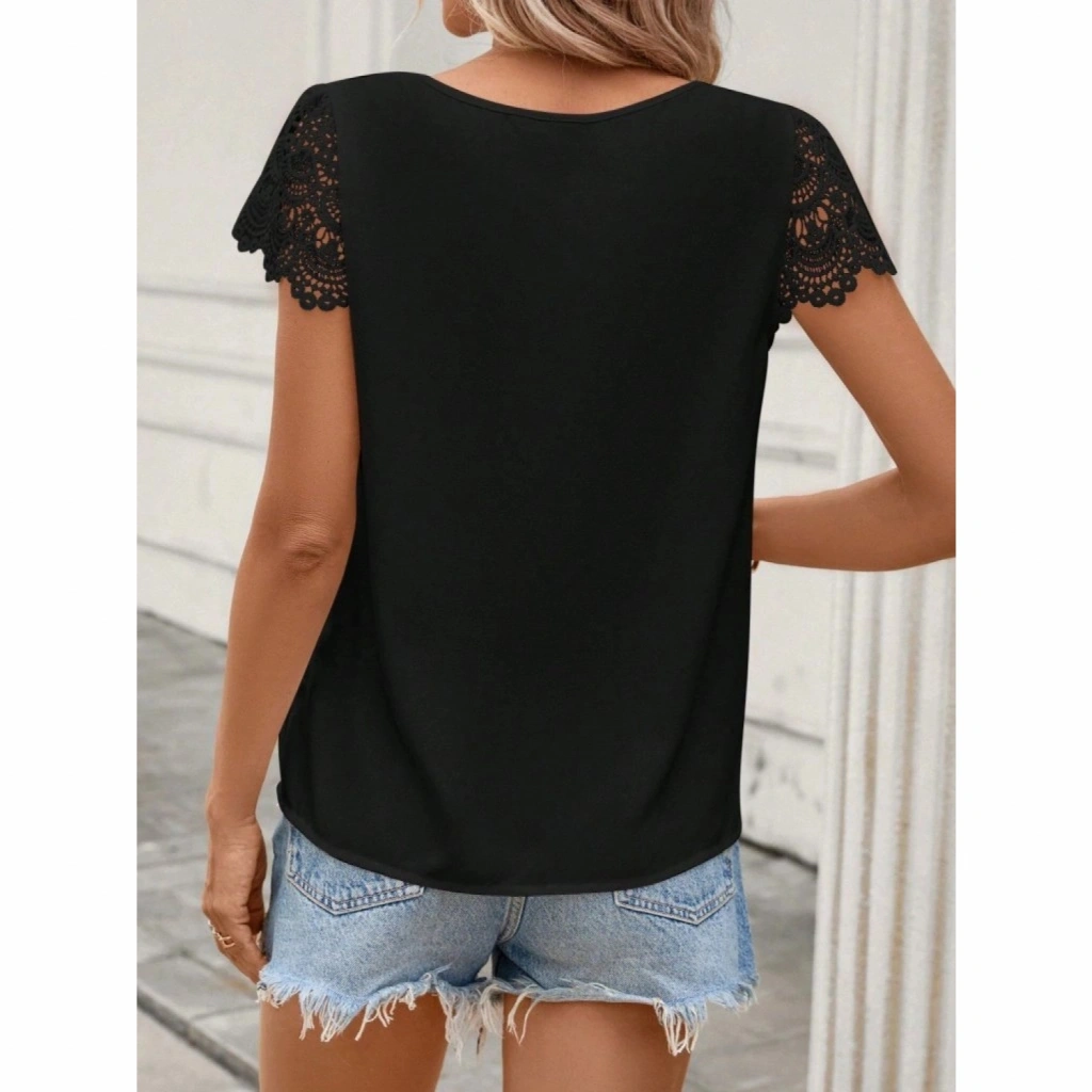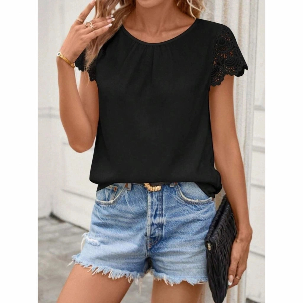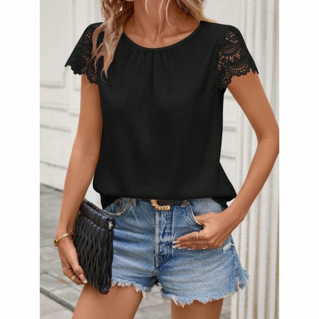 Kadın Kısa Dantel Kollu Bisiklet Yaka Sandy Bluz