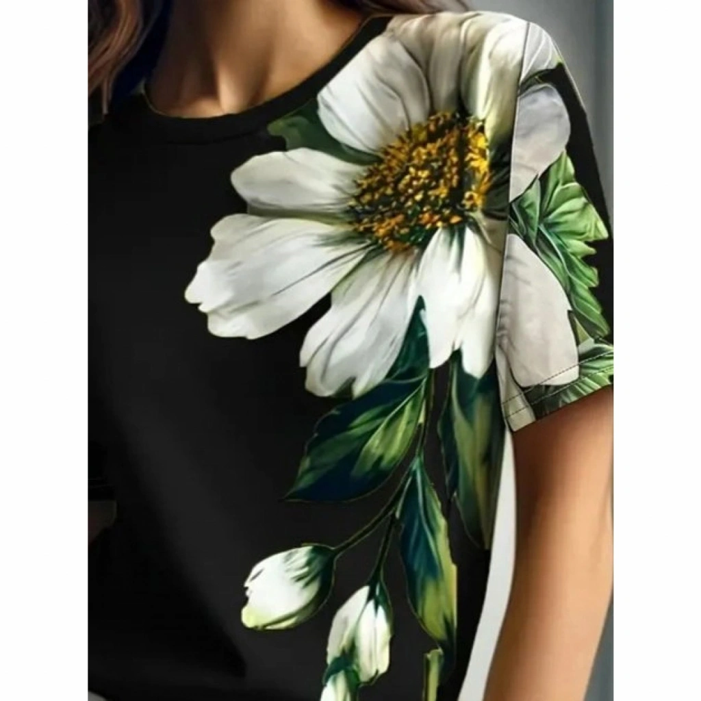 Kadın Kısa Kollu Bisiklet Yaka çiçek Baskılı Süprem Bluz