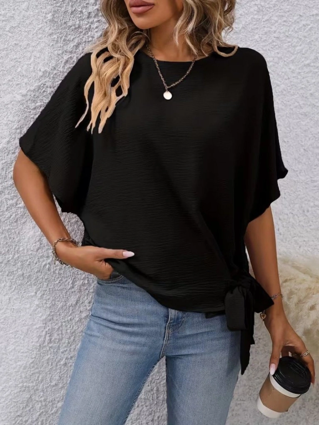 Kadın Kısa Kollu Bisiklet Yaka Yandan Bağcıklı Aerobin Bluz