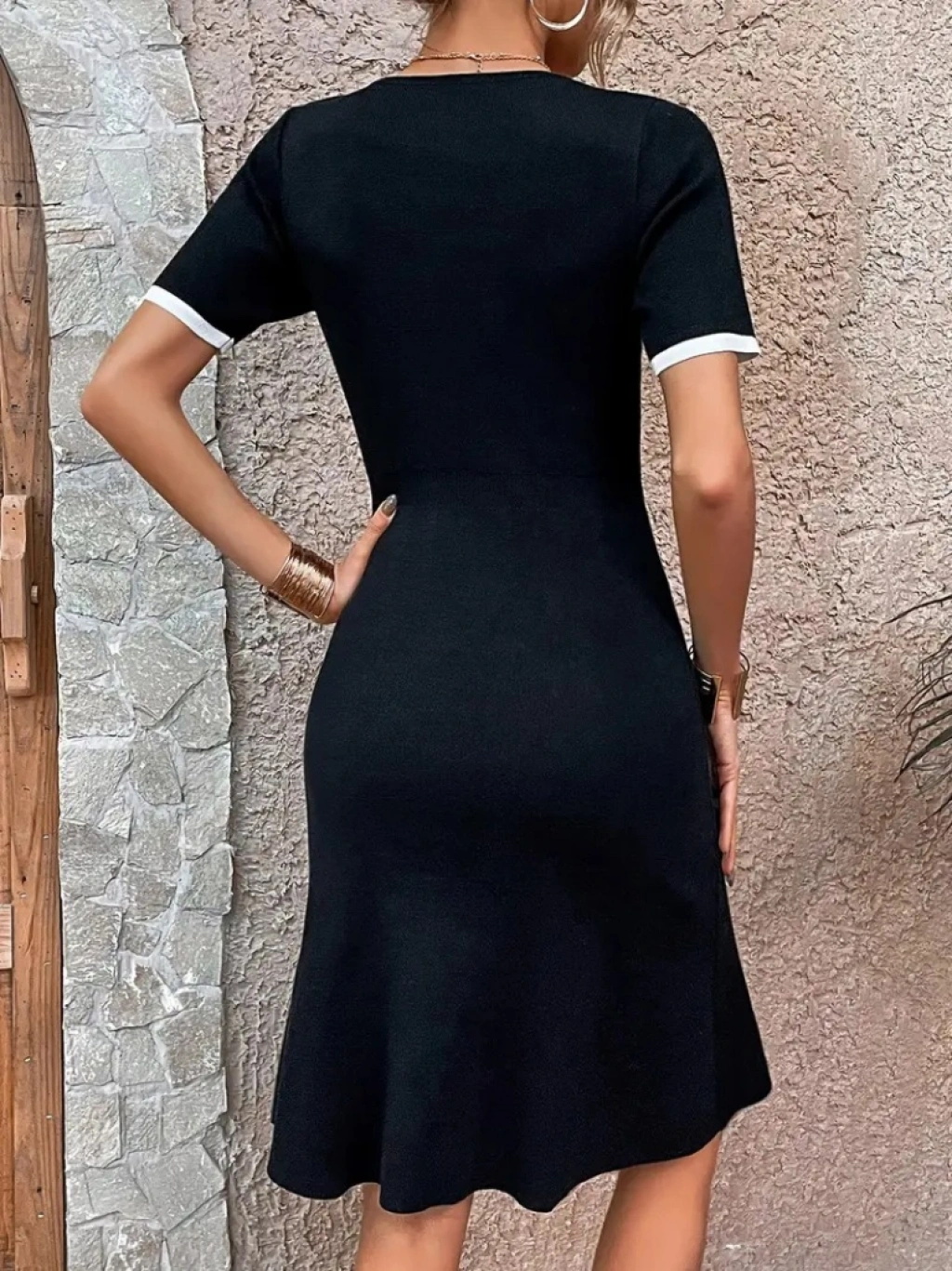 Kadın Kısa Kollu Bisiklet Yaka Yandan Yırtmaçlı Renkli şerit Detay Janjan Krep Elbise