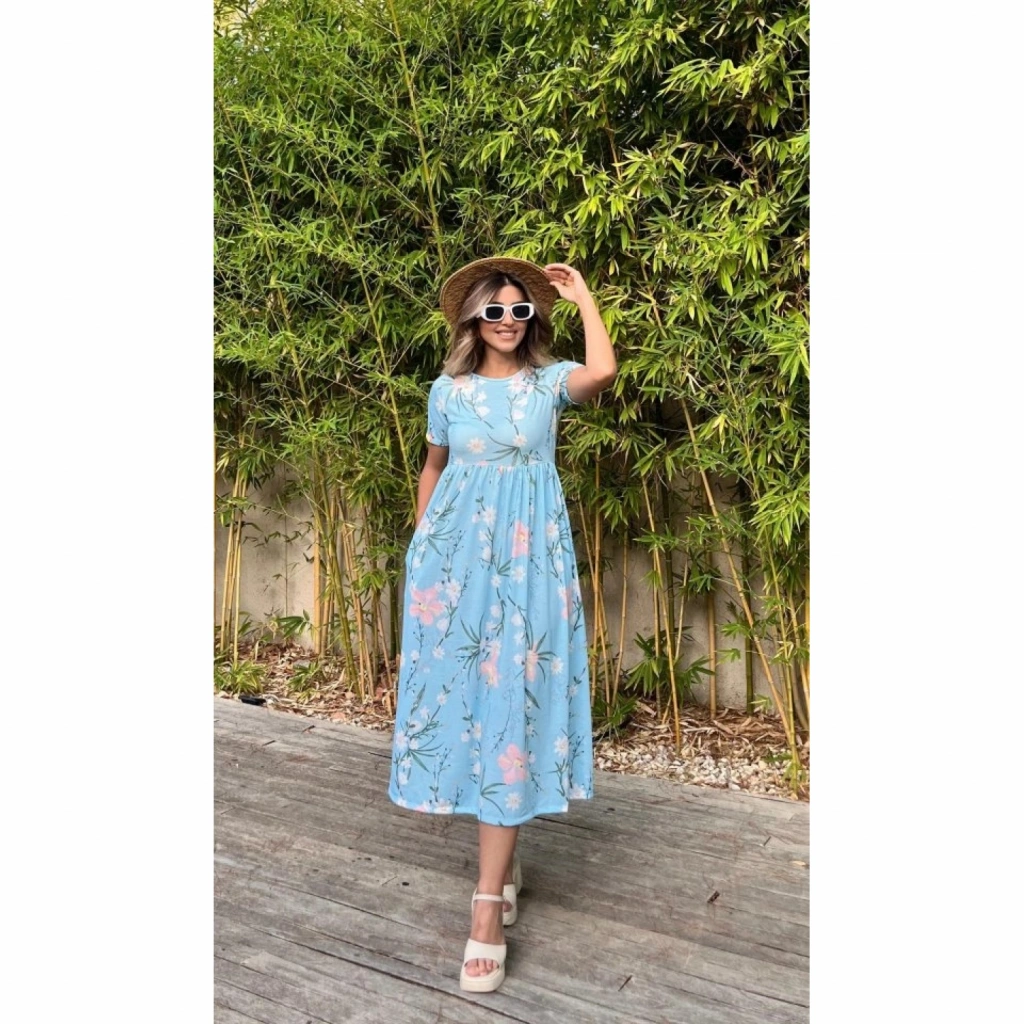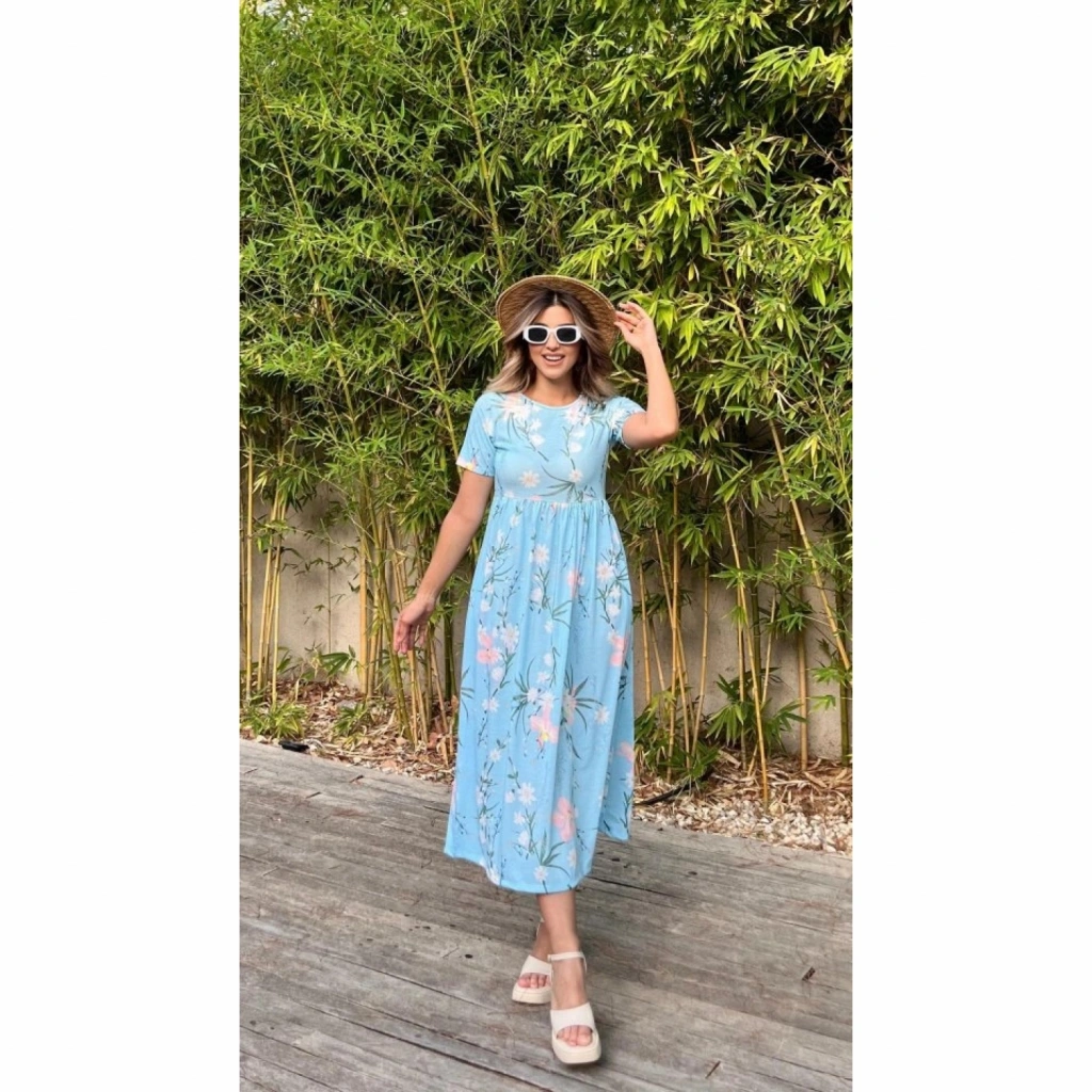 Kadın Kısa Kollu çiçek Baskı Midi Boy Süprem Elbise