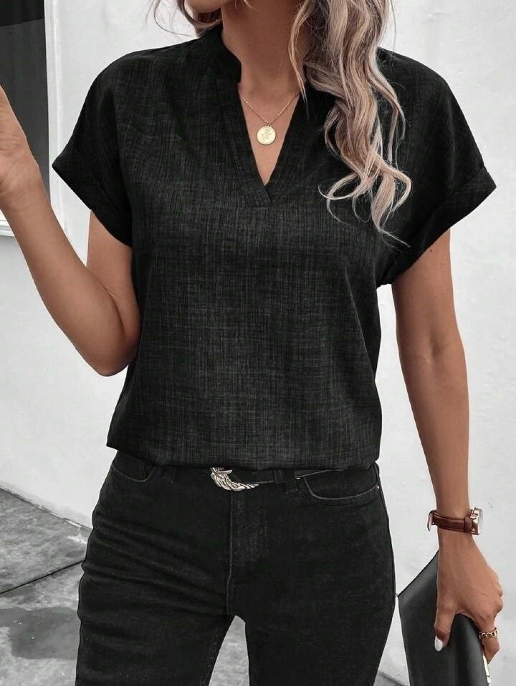Kadın Kısa Kollu Hakim Yaka Sofya Bluz