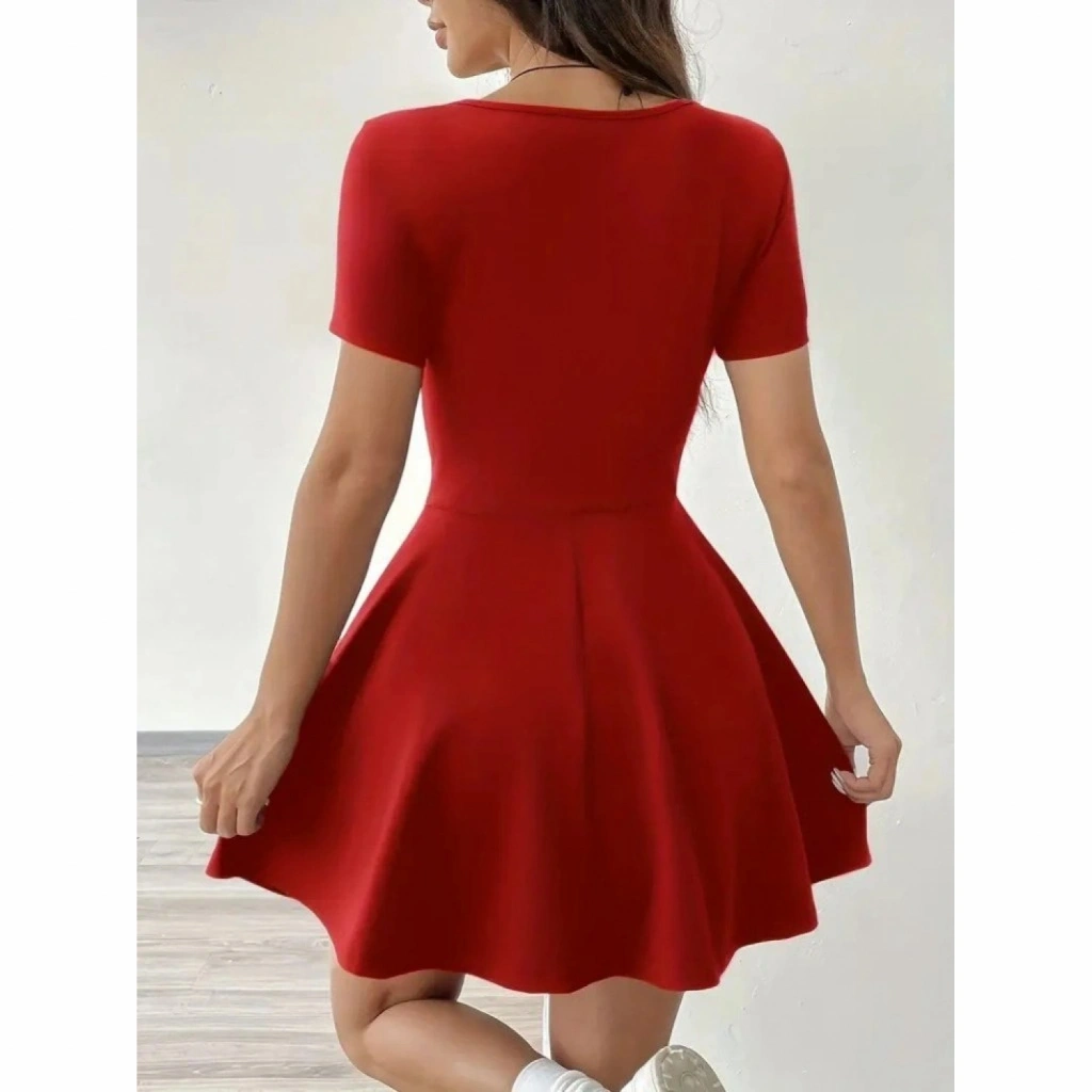 Kadın Kısa Kollu Kare Yaka Short Detaylı Cepli Dalgıç Elbise