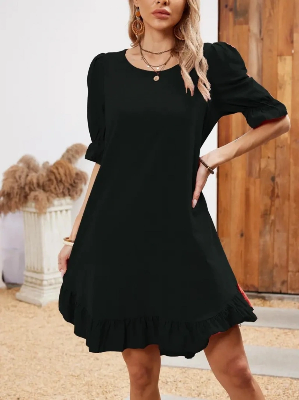 Kadın Kısa Kollu Kol Ve Eteği Volanlı Bisiklet Yaka Aerobin Elbise