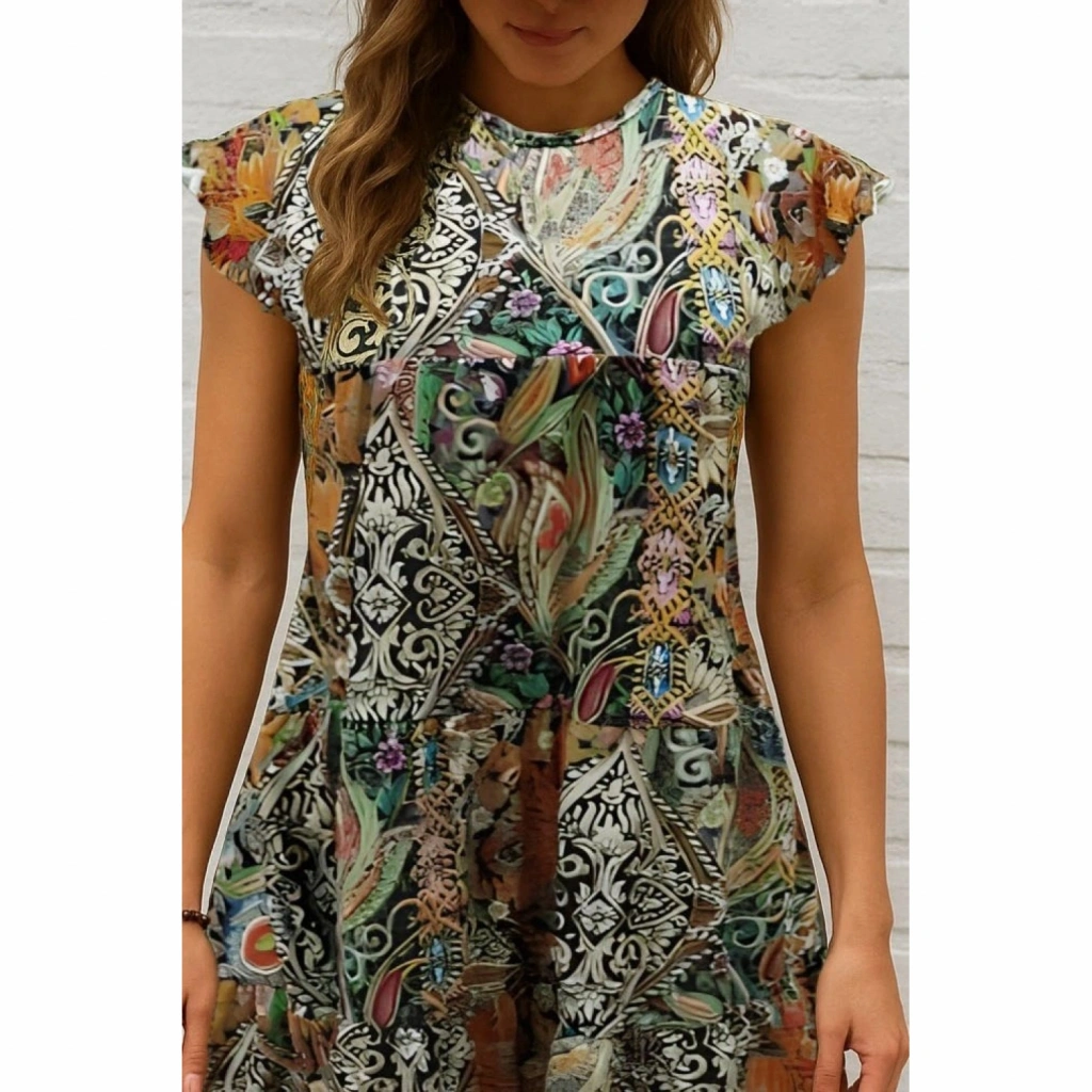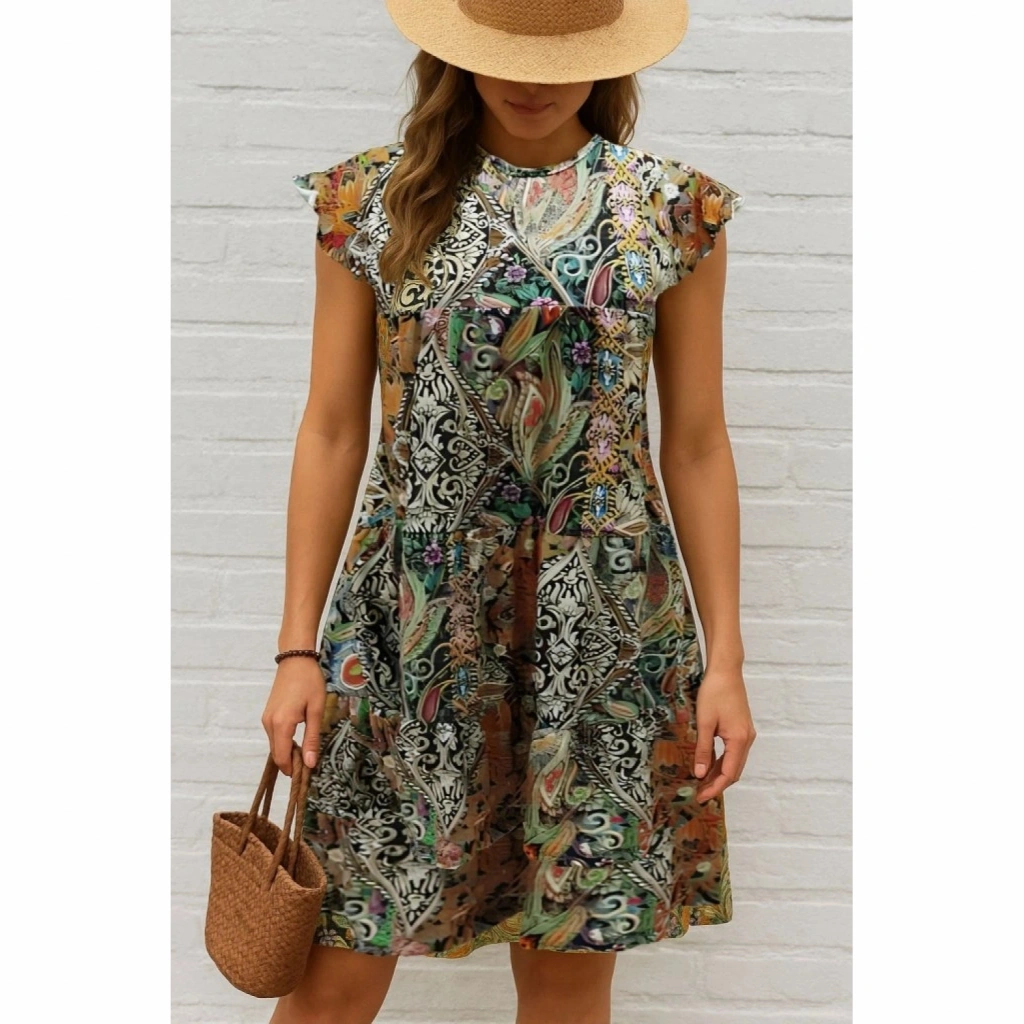 Kadın Kısa Kollu Kolları Fırfırlı Bisiklet Yakalı Kare Desenli Elbise