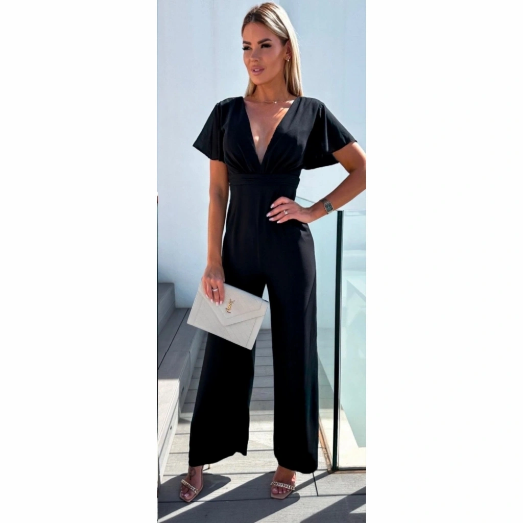Kadın Kısa Kollu Kruvaze Yaka Sırt Dekolteli Pegasus Kumaş Tulum