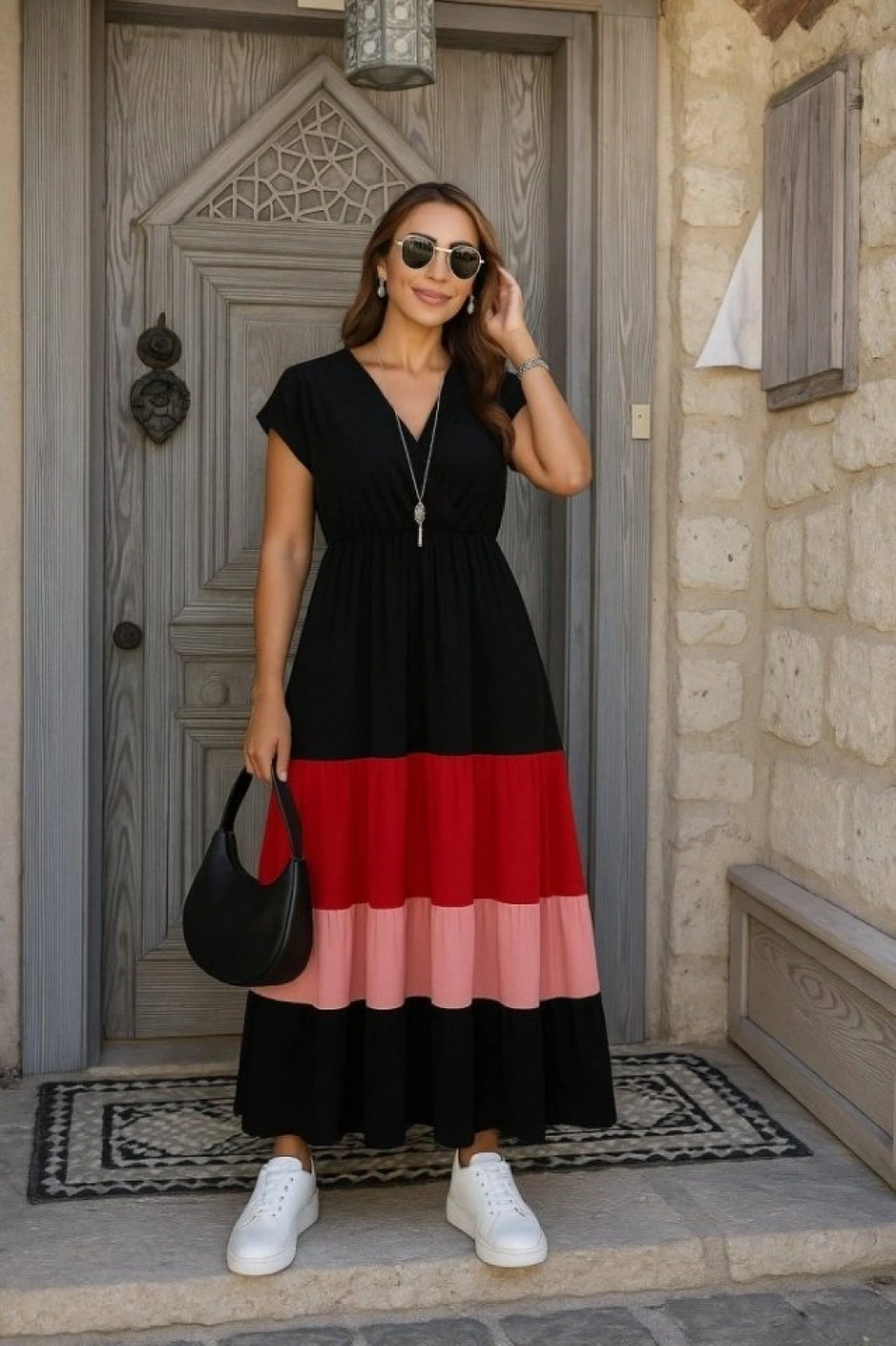 Kadın Kısa Kollu Kruvaze Yakalı çok Renkli Aerobin Elbise
